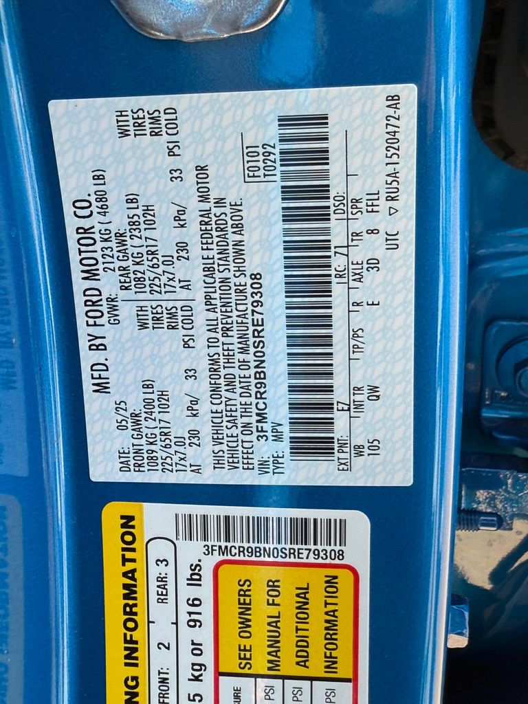 Velocity Blu Me 2025 Ford Bronco Sport Big Bend 4WD 1.5L EcoBoost 8-Speed Automatic