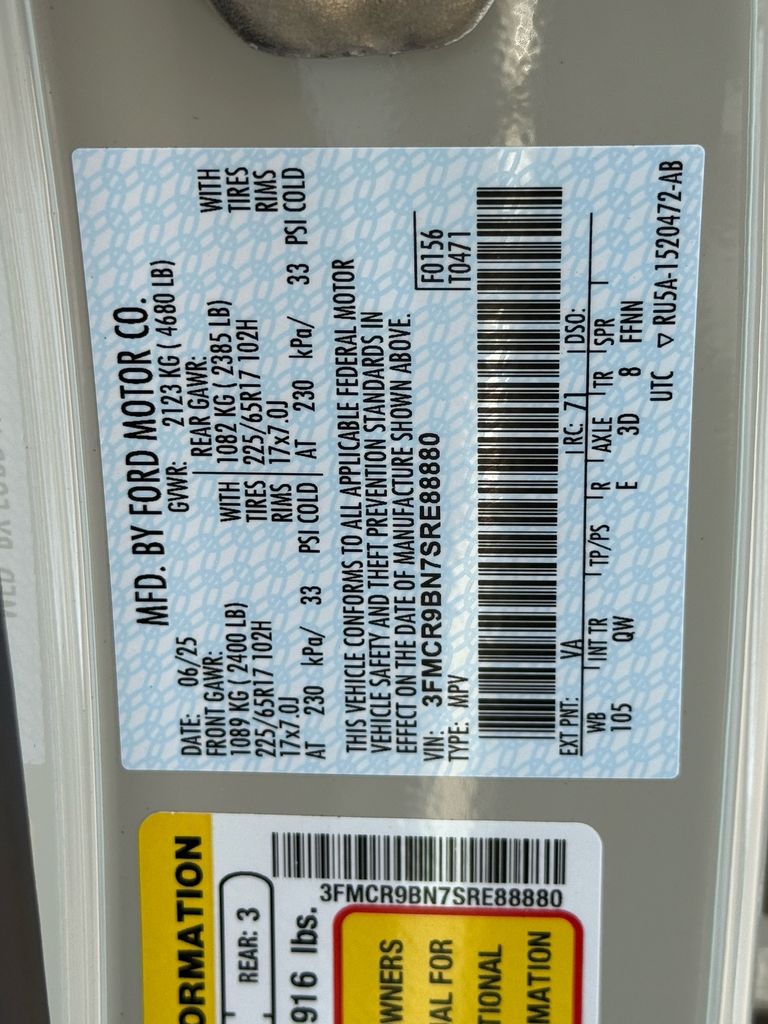 - VIN : 3FMCR9BN7SRE88880