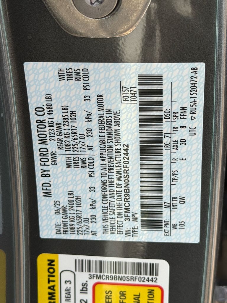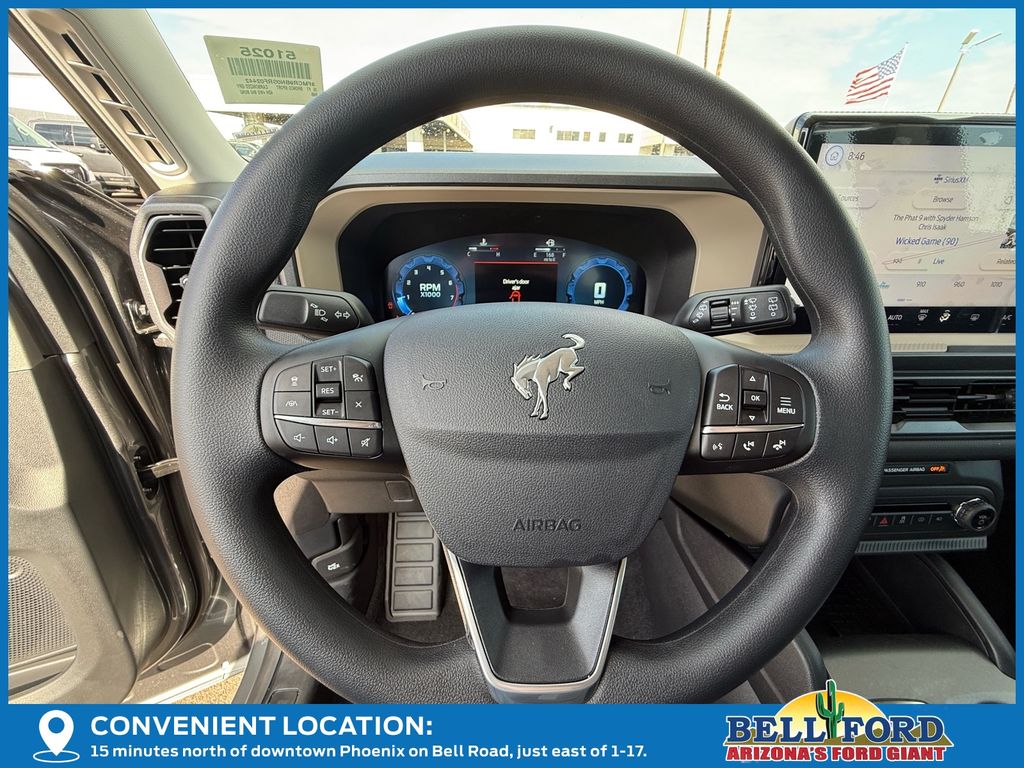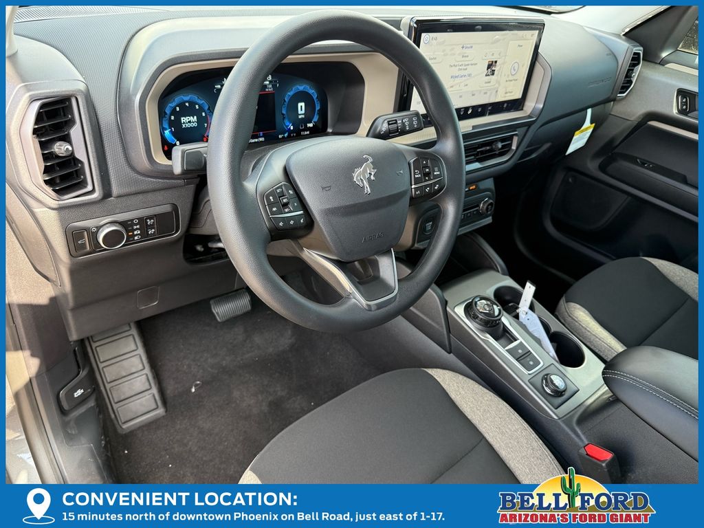 This Ford Bronco Sport is equipped with the following options: Equipment Group 200A, 4-Wheel Disc Brakes, 6 Speakers, ABS brakes, Air Conditioning, Alloy wheels, AM/FM radio: SiriusXM, AM/FM Stereo, Auto High-beam Headlights, Automatic temperature control, Brake assist, Cloth w/Easy-to-Clean Front Bucket Seats, Compass, Delay-off headlights, Driver door bin, Driver vanity mirror, Dual front impact airbags, Dual front side impact airbags, Electronic Stability Control, Emergency communication system: SYNC 4 911 Assist, Four wheel independent suspension, Front anti-roll bar, Front Bucket Seats, Front Center Armrest, Front reading lights, Fully automatic headlights, Heated door mirrors, Illuminated entry, Knee airbag, Low tire pressure warning, Occupant sensing airbag, Outside temperature display, Overhead airbag, Overhead console, Panic alarm, Passenger door bin, Passenger vanity mirror, Power door mirrors, Power steering, Power windows, Radio data system, Rear anti-roll bar, Rear Parking Sensors, Rear reading lights, Rear seat center armrest, Rear window defroster, Rear window wiper, Remote keyless entry, Security system, SiriusXM, Speed control, Speed-sensing steering, Speed-Sensitive Wipers, Split folding rear seat, Steering wheel mounted audio controls, SYNC 4 w/Enhanced Voice Recognition, Tachometer, Telescoping steering wheel, Tilt steering wheel, Traction control, Trip computer, Variably intermittent wipers, and Wheels: 17" Carbonized Gray-Painted Aluminum. Price includes: $1000 - Bonus Customer Cash. Exp. 01/05/2026 $1000 - Final Days Mega Bonus Cash. Exp. 01/02/2026 $500 - Retail Bonus Cash. Exp. 01/05/2026