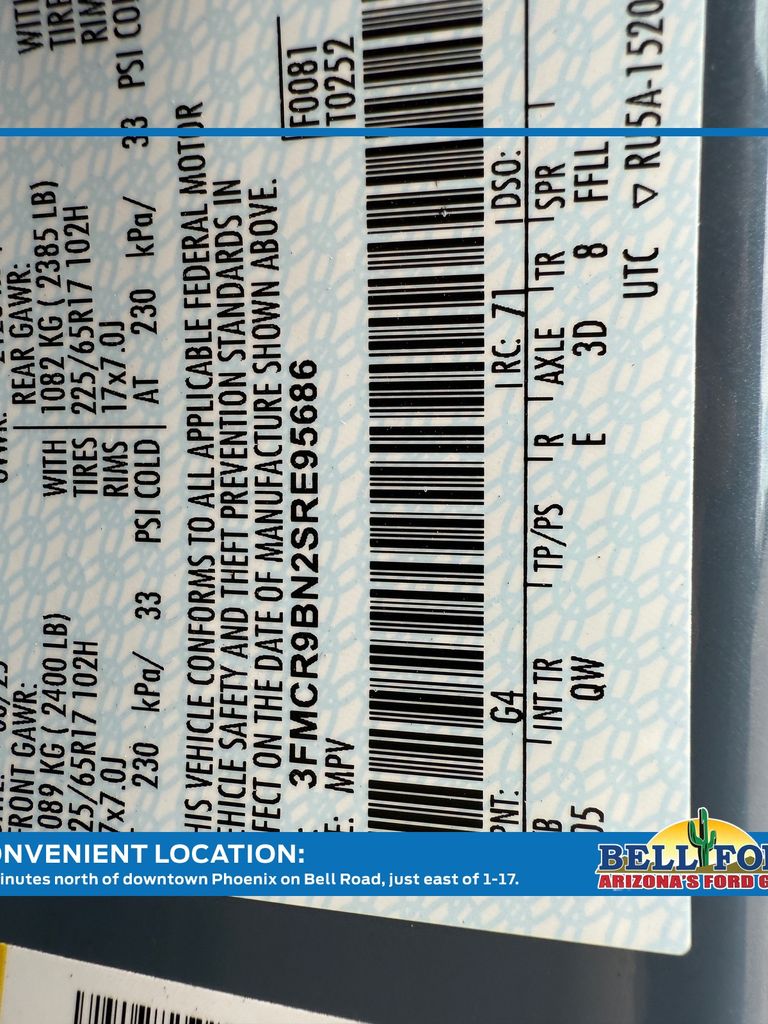 This Ford Bronco Sport is equipped with the following options: Black Diamond Off-Road Package (110V/400W AC Power Outlet, 2nd Row Carpeted Seatback, Auxiliary Switches & Wiring, Brush Guard, Cargo Management System (Shelf/Divider/Table), Cargo Mat, Class II Trailer Tow Pack w/Trailer Sway Control, Fender Tie Downs, Front & Rear Black Bumpers, Interior Grab Handle, Recovery Hooks, and Wheels: 17" Carbonized Gray Painted Aluminum), Convenience Package (Front Driver/Passenger Seat Back Map Pockets, Heated 8-Way Power Driver's Seat, LED Fog Lamps, Premium Wrapped Steering Wheel, and Universal Garage Door Opener (UGDO)), Equipment Group 200A, 4-Wheel Disc Brakes, 6 Speakers, ABS brakes, Air Conditioning, Alloy wheels, AM/FM radio: SiriusXM, AM/FM Stereo, Auto High-beam Headlights, Automatic temperature control, Brake assist, Cloth w/Easy-to-Clean Front Bucket Seats, Compass, Delay-off headlights, Driver door bin, Driver vanity mirror, Dual front impact airbags, Dual front side impact airbags, Electronic Stability Control, Emergency communication system: SYNC 4 911 Assist, Four wheel independent suspension, Front anti-roll bar, Front Bucket Seats, Front Center Armrest, Front reading lights, Fully automatic headlights, Heated door mirrors, Illuminated entry, Knee airbag, Low tire pressure warning, Occupant sensing airbag, Outside temperature display, Overhead airbag, Overhead console, Panic alarm, Passenger door bin, Passenger vanity mirror, Power door mirrors, Power Moonroof, Power steering, Power windows, Radio data system, Rear anti-roll bar, Rear Parking Sensors, Rear reading lights, Rear seat center armrest, Rear window defroster, Rear window wiper, Remote keyless entry, Security system, SiriusXM, Speed control, Speed-sensing steering, Speed-Sensitive Wipers, Split folding rear seat, Steering wheel mounted audio controls, SYNC 4 w/Enhanced Voice Recognition, Tachometer, Telescoping steering wheel, Tilt steering wheel, Traction control, Trip computer, Variably intermittent wipers, and Wheels: 17" Carbonized Gray-Painted Aluminum. Price includes: $2000 - Retail Customer Cash. Exp. 03/31/2026