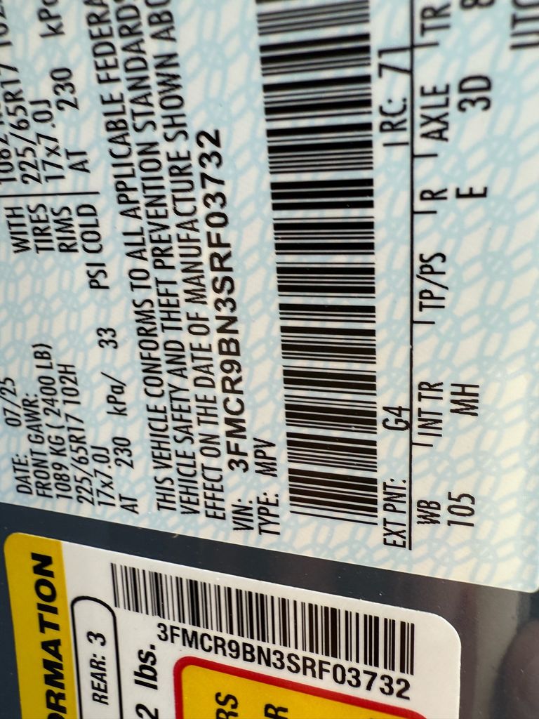 This Ford Bronco Sport is equipped with the following options: Black Appearance Package (Carbon Black Grille w/Black BRONCO Lettering, Cargo Mat, Front & Rear Floor Liners w/o Carpet Mats, Front Driver/Passenger Seat Back Map Pockets, Liftgate w/Black BRONCO SPORT Lettering, Painted Shadow Black Roof, Premium Trimmed Htd Fr Sport Contour Bucket Seats, and Wheels: 17" Matte Black-Painted Aluminum), Convenience Package (Heated 8-Way Power Driver's Seat, LED Fog Lamps, Premium Wrapped Steering Wheel, and Universal Garage Door Opener (UGDO)), Equipment Group 200A, 4-Wheel Disc Brakes, 6 Speakers, ABS brakes, Air Conditioning, Alloy wheels, AM/FM radio: SiriusXM, AM/FM Stereo, Auto High-beam Headlights, Automatic temperature control, Brake assist, Cloth w/Easy-to-Clean Front Bucket Seats, Compass, Delay-off headlights, Driver door bin, Driver vanity mirror, Dual front impact airbags, Dual front side impact airbags, Electronic Stability Control, Emergency communication system: SYNC 4 911 Assist, Four wheel independent suspension, Front anti-roll bar, Front Bucket Seats, Front Center Armrest, Front reading lights, Fully automatic headlights, Heated door mirrors, Illuminated entry, Knee airbag, Low tire pressure warning, Occupant sensing airbag, Outside temperature display, Overhead airbag, Overhead console, Panic alarm, Passenger door bin, Passenger vanity mirror, Power door mirrors, Power Moonroof, Power steering, Power windows, Radio data system, Rear anti-roll bar, Rear Parking Sensors, Rear reading lights, Rear seat center armrest, Rear window defroster, Rear window wiper, Remote keyless entry, Security system, SiriusXM, Speed control, Speed-sensing steering, Speed-Sensitive Wipers, Split folding rear seat, Steering wheel mounted audio controls, SYNC 4 w/Enhanced Voice Recognition, Tachometer, Telescoping steering wheel, Tilt steering wheel, Traction control, Trip computer, Variably intermittent wipers, and Wheels: 17" Carbonized Gray-Painted Aluminum. Price includes: $2000 - Retail Customer Cash. Exp. 03/31/2026 $500 - Bonus Customer Cash. Exp. 02/02/2026