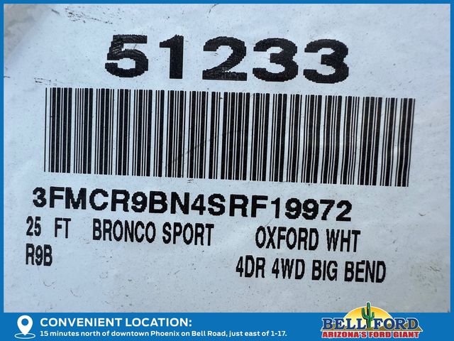 Oxford Wht 2025 Ford Bronco Sport Big Bend 4WD 1.5L EcoBoost 8-Speed Automatic