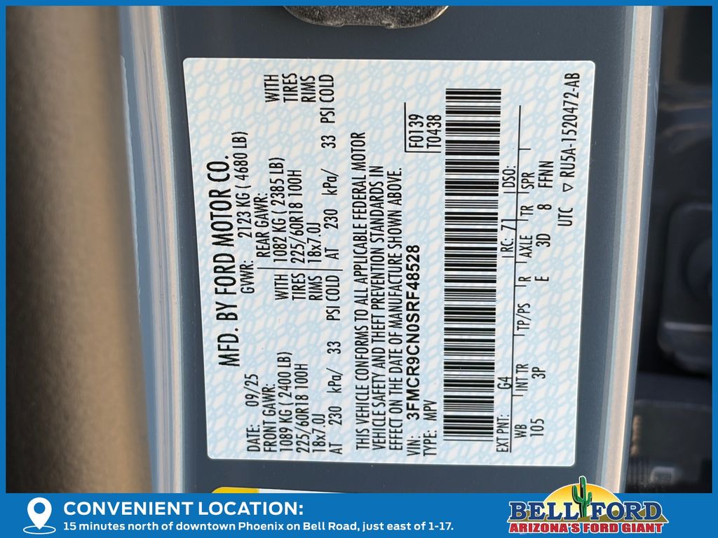 - VIN : 3FMCR9CN0SRF48528
