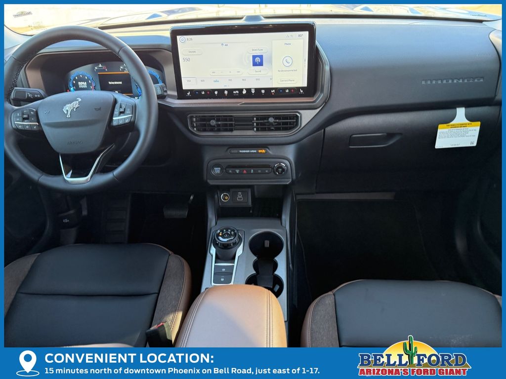 This Ford Bronco Sport is equipped with the following options: Equipment Group 300A, 4-Wheel Disc Brakes, 6 Speakers, ABS brakes, Air Conditioning, Alloy wheels, AM/FM radio: SiriusXM, AM/FM Stereo, Auto High-beam Headlights, Auto-dimming Rear-View mirror, Automatic temperature control, Brake assist, Compass, Delay-off headlights, Driver door bin, Driver vanity mirror, Dual front impact airbags, Dual front side impact airbags, Electronic Stability Control, Emergency communication system: SYNC 4 911 Assist, Four wheel independent suspension, Front anti-roll bar, Front Bucket Seats, Front Center Armrest, Front Driver/Passenger Seat Back Map Pockets, Front dual zone A/C, Front fog lights, Front reading lights, Fully automatic headlights, Garage door transmitter, Heated door mirrors, Heated front seats, Heated steering wheel, Illuminated entry, Knee airbag, Low tire pressure warning, Memory seat, Occupant sensing airbag, Outside temperature display, Overhead airbag, Overhead console, Panic alarm, Passenger door bin, Passenger vanity mirror, Power door mirrors, Power driver seat, Power passenger seat, Power steering, Power windows, Premium Trimmed Front Bucket Seats w/Ebony/Roast, Radio data system, Rain sensing wipers, Rear anti-roll bar, Rear Parking Sensors, Rear reading lights, Rear seat center armrest, Rear window defroster, Rear window wiper, Remote keyless entry, Security system, SiriusXM, Speed control, Speed-sensing steering, Speed-Sensitive Wipers, Split folding rear seat, Steering wheel mounted audio controls, SYNC 4 w/Enhanced Voice Recognition, Tachometer, Telescoping steering wheel, Tilt steering wheel, Traction control, Trip computer, Variably intermittent wipers, and Wheels: 18" Ebony Black-Painted Aluminum. Price includes: $3000 - Retail Customer Cash. Exp. 04/30/2026