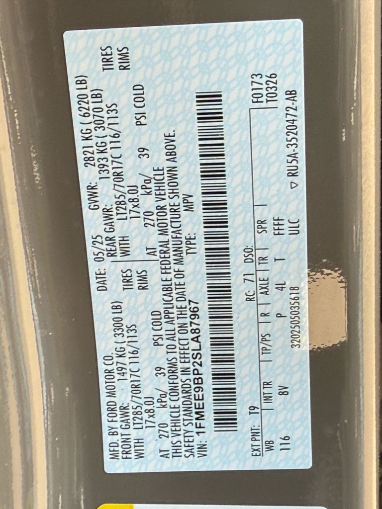 - VIN : 1FMEE9BP2SLA87967