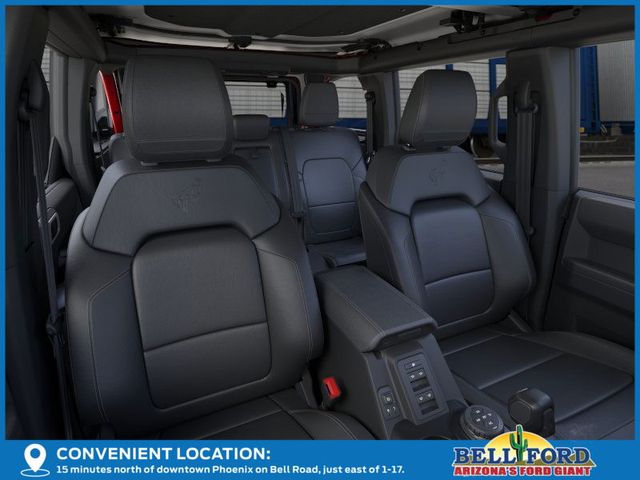 Equipment Group 334A Lux Package (2-Door Intelligent Access w/Lock/Unlock, 360-Degree Camera, Adaptive Cruise Control, Ambient Footwell Lighting, Connected Navigation, Dr & Pass Illuminated Sliding Visor Vanity Mirrors, Dual Smart Charging USB Ports, Dual-Zone Electronic Automatic Temperature Control, Evasive Steering Assist, Front Parking Sensors, Front Row Heated Seats, Information on Demand Panel, Power Outlet - Back Side of Center Floor Console, Radio: B&O Sound System by Bang & Olufsen, Rear Parking Sensors, Sideview Mirrors, and Universal Garage Door Opener), Sasquatch Package (High Clearance Fender Flares, High Clearance Suspension, Position-Sensitive Bilstein Shock Absorbers, and Wheels: 17" Carbonized Gray Painted Aluminum), 4-Wheel Disc Brakes, 7 Speakers, ABS brakes, Air Conditioning, Alloy wheels, AM/FM radio: SiriusXM with 360L, AM/FM Stereo, Auto High-Beam Headlamps, Auto High-beam Headlights, Auto-dimming Rear-View mirror, BLIS Blind Spot Information System, Body Color-Painted Hard Top, Brake assist, Compass, Delay-off headlights, Driver door bin, Driver vanity mirror, Dual front impact airbags, Dual front side impact airbags, Electronic Stability Control, Emergency communication system: 911 Assist, Exterior Parking Camera Rear, Front anti-roll bar, Front Bucket Seats, Front Center Armrest, Front fog lights, Front reading lights, Front wheel independent suspension, Fully automatic headlights, Hard Top Sound Deadening Headliner, Heated door mirrors, Heated front seats, Heated steering wheel, HOSS 3.0 w/FOX Internal Bypass Dampers, Illuminated entry, Integrated roll-over protection, Lane-Keeping System, Leather Shift Knob, Leather-Trimmed/Vinyl Bucket Seats, Low tire pressure warning, Marine Grade Vinyl Heated Bucket Seats, Occupant sensing airbag, Outside temperature display, Overhead airbag, Overhead console, Panic alarm, Passenger door bin, Passenger vanity mirror, Power door mirrors, Power steering, Power windows, Pre-Collision Assist w/Automatic Emergency Braking, Radio data system, Rear-View Camera, Rear-Window Defroster & Washer, Remote keyless entry, Security system, SiriusXM w/360L, Speed control, Split folding rear seat, Steering wheel mounted audio controls, SYNC 4, Tachometer, Telescoping steering wheel, Tilt steering wheel, Traction control, Trip computer, Variably intermittent wipers, Voltmeter, and Wheels: 17" Carbonized Gray-Painted Aluminum. Price includes: $1000 - Bonus Customer Cash. Exp. 01/05/2026 $500 - Retail Bonus Cash. Exp. 01/05/2026