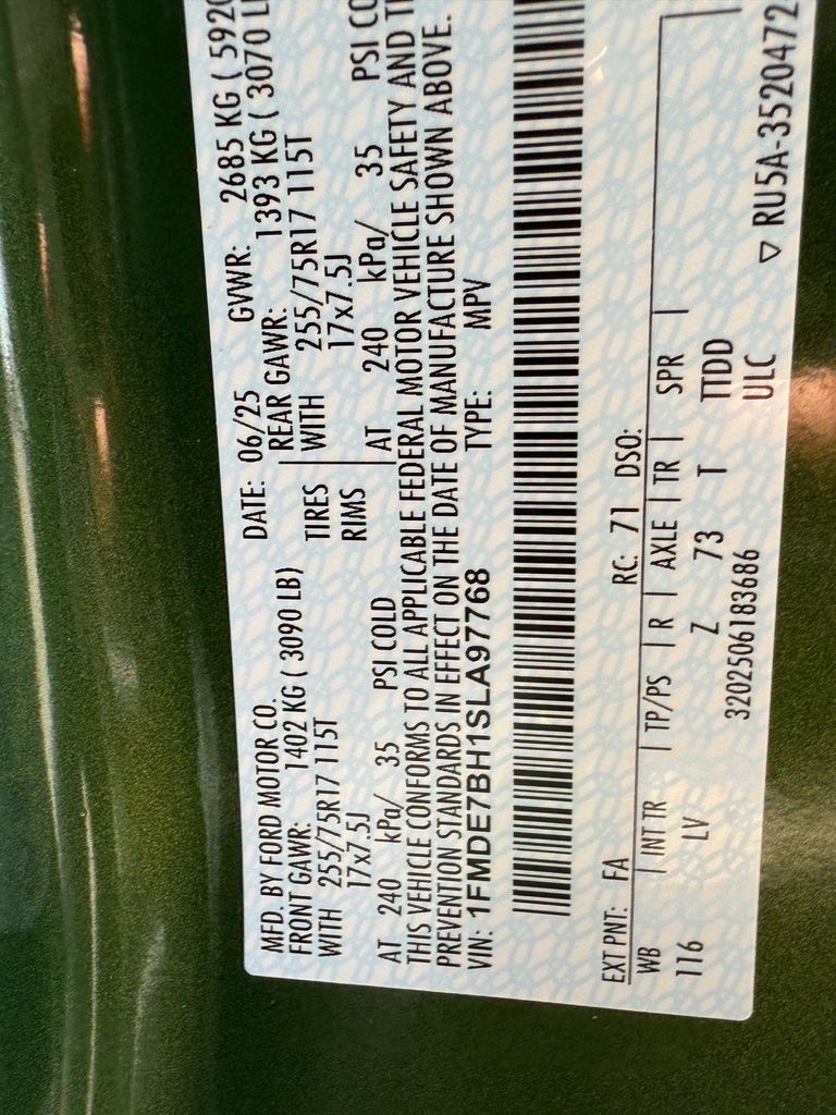 - VIN : 1FMDE7BH1SLA97768