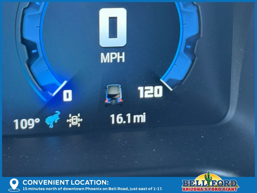 This Ford Bronco is equipped with the following options: Equipment Group 222A Mid Package (2-Door Intelligent Access w/Lock/Unlock, Ambient Footwell Lighting, Connected Navigation, Dr & Pass Illuminated Sliding Visor Vanity Mirrors, Dual Smart Charging USB Ports, Dual-Zone Electronic Automatic Temperature Control, Front Row Heated Seats, Power Outlet - Back Side of Center Floor Console, and Rear Parking Sensors), 4-Wheel Disc Brakes, 4.46 Axle Ratio, 7 Speakers, ABS brakes, Air Conditioning, Alloy wheels, AM/FM radio: SiriusXM with 360L, AM/FM Stereo, Auto High-Beam Headlamps, Auto High-beam Headlights, BLIS Blind Spot Information System, Brake assist, Cloth Bucket Seats, Compass, Delay-off headlights, Driver door bin, Driver vanity mirror, Dual front impact airbags, Dual front side impact airbags, Electronic Stability Control, Emergency communication system: 911 Assist, Exterior Parking Camera Rear, Front anti-roll bar, Front Bucket Seats, Front Center Armrest, Front reading lights, Front wheel independent suspension, Fully automatic headlights, Heated door mirrors, Illuminated entry, Integrated roll-over protection, Internet access capable: FordPass Connect, Lane-Keeping System, Leather Shift Knob, Low tire pressure warning, Occupant sensing airbag, Outside temperature display, Overhead airbag, Overhead console, Panic alarm, Passenger door bin, Passenger vanity mirror, Power door mirrors, Power steering, Power windows, Pre-Collision Assist w/Automatic Emergency Braking, Radio data system, Rear-View Camera, Remote keyless entry, Security system, SiriusXM w/360L, Speed control, Split folding rear seat, Steering wheel mounted audio controls, SYNC 4, Tachometer, Telescoping steering wheel, Tilt steering wheel, Traction control, Trip computer, Variably intermittent wipers, and Wheels: 17" Carbonized Gray-Painted Aluminum. Price includes: $1000 - Bonus Customer Cash. Exp. 01/05/2026 $1000 - Final Days Mega Bonus Cash. Exp. 01/02/2026 $1000 - Retail Bonus Cash. Exp. 01/05/2026