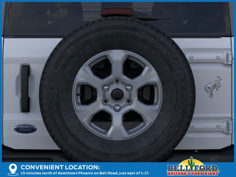 This Ford Bronco is equipped with the following options: Equipment Group 222A Mid Package (2-Door Intelligent Access w/Lock/Unlock, Ambient Footwell Lighting, Connected Navigation, Dr & Pass Illuminated Sliding Visor Vanity Mirrors, Dual Smart Charging USB Ports, Dual-Zone Electronic Automatic Temperature Control, Front Row Heated Seats, Power Outlet - Back Side of Center Floor Console, and Rear Parking Sensors), Trailer Tow Package (DIO), 4-Wheel Disc Brakes, 4.46 Axle Ratio, 7 Speakers, ABS brakes, Air Conditioning, Alloy wheels, AM/FM radio: SiriusXM with 360L, AM/FM Stereo, Auto High-Beam Headlamps, Auto High-beam Headlights, BLIS Blind Spot Information System, Brake assist, Carbonized Gray Molded-In-Color Hard Top, Cloth Bucket Seats, Compass, Delay-off headlights, Driver door bin, Driver vanity mirror, Dual front impact airbags, Dual front side impact airbags, Electronic Stability Control, Emergency communication system: 911 Assist, Exterior Parking Camera Rear, First Aid Kit, Front anti-roll bar, Front Bucket Seats, Front Center Armrest, Front reading lights, Front wheel independent suspension, Fully automatic headlights, Hard Top Sound Deadening Headliner, Heated door mirrors, Illuminated entry, Integrated roll-over protection, Internet access capable: FordPass Connect, Lane-Keeping System, Leather Shift Knob, Low tire pressure warning, Occupant sensing airbag, Outside temperature display, Overhead airbag, Overhead console, Panic alarm, Passenger door bin, Passenger vanity mirror, Power door mirrors, Power steering, Power windows, Pre-Collision Assist w/Automatic Emergency Braking, Radio data system, Rear-View Camera, Rear-Window Defroster & Washer, Remote keyless entry, Security system, SiriusXM w/360L, Speed control, Split folding rear seat, Steering wheel mounted audio controls, SYNC 4, Tachometer, Telescoping steering wheel, Tilt steering wheel, Traction control, Trip computer, Variably intermittent wipers, and Wheels: 17" Carbonized Gray-Painted Aluminum. Price includes: $1000 - Bonus Customer Cash. Exp. 01/05/2026 $1000 - Final Days Mega Bonus Cash. Exp. 01/02/2026 $1000 - Retail Bonus Cash. Exp. 01/05/2026