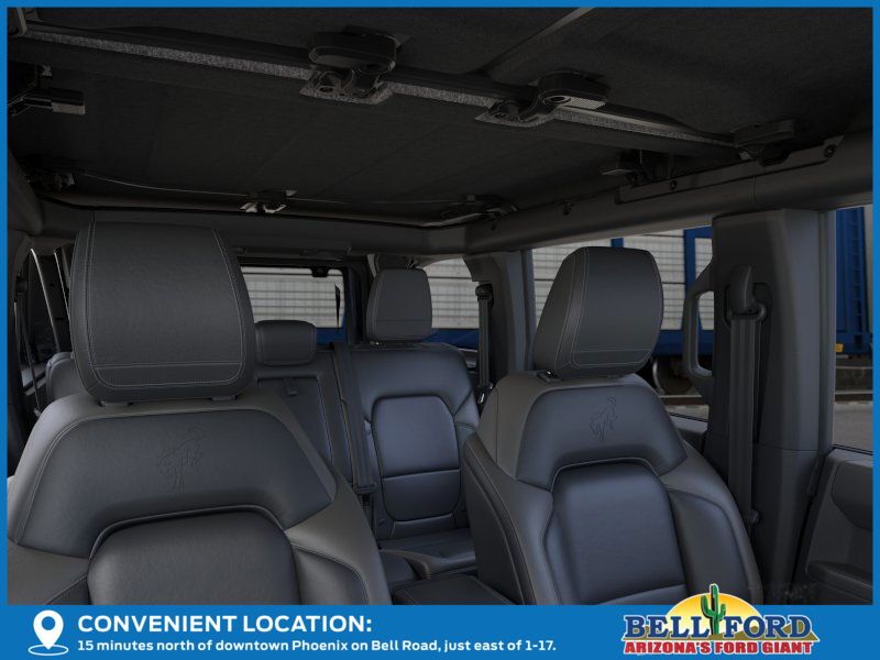 Equipment Group 314A Lux Package (360-Degree Camera, Adaptive Cruise Control, Evasive Steering Assist, Front Parking Sensors, Information on Demand Panel, Radio: B&O Sound System by Bang & Olufsen, Sideview Mirrors, and Universal Garage Door Opener), Sasquatch Package (High Clearance Fender Flares, High Clearance Suspension, Position-Sensitive Bilstein Shock Absorbers, and Wheels: 17" Carbonized Gray Painted Aluminum), Trailer Tow Package (DIO), 18" Bright Machined Aluminum Wheels, 4-Wheel Disc Brakes, 7 Speakers, ABS brakes, Air Conditioning, Alloy wheels, AM/FM radio: SiriusXM with 360L, AM/FM Stereo, Auto High-beam Headlights, Auto-dimming Rear-View mirror, Automatic temperature control, Brake assist, Carbonized Gray Molded-In-Color Hard Top, Compass, Connected Navigation, Delay-off headlights, Driver door bin, Driver vanity mirror, Dual front impact airbags, Dual front side impact airbags, Electronic Stability Control, Emergency communication system: 911 Assist, Exterior Parking Camera Rear, First Aid Kit, Front anti-roll bar, Front Bucket Seats, Front Center Armrest, Front dual zone A/C, Front fog lights, Front reading lights, Front wheel independent suspension, Fully automatic headlights, Hard Top Sound Deadening Headliner, Heated door mirrors, Heated front seats, Heated Leather-Trimmed/Vinyl Bucket Seats, Heated steering wheel, Illuminated entry, Integrated roll-over protection, Leather Shift Knob, Low tire pressure warning, Navigation system: Connected Navigation, Occupant sensing airbag, Outside temperature display, Overhead airbag, Overhead console, Panic alarm, Passenger door bin, Passenger vanity mirror, Power door mirrors, Power driver seat, Power passenger seat, Power steering, Power windows, Radio data system, Rear seat center armrest, Rear-Window Defroster & Washer, Remote keyless entry, Security system, SiriusXM w/360L, Speed control, Split folding rear seat, Steering wheel mounted audio controls, SYNC 4, Tachometer, Telescoping steering wheel, Tilt steering wheel, Traction control, Trip computer, Variably intermittent wipers, Voltmeter, and Wheels: 17" Black High Gloss-Painted Aluminum (64X) Price includes: $1000 - Bonus Customer Cash. Exp. 01/05/2026 $1000 - Retail Bonus Cash. Exp. 01/05/2026