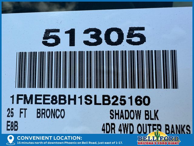 Shadow Blk 2025 Ford Bronco Outer Banks 4WD 2.3L EcoBoost I-4 10-Speed Automatic