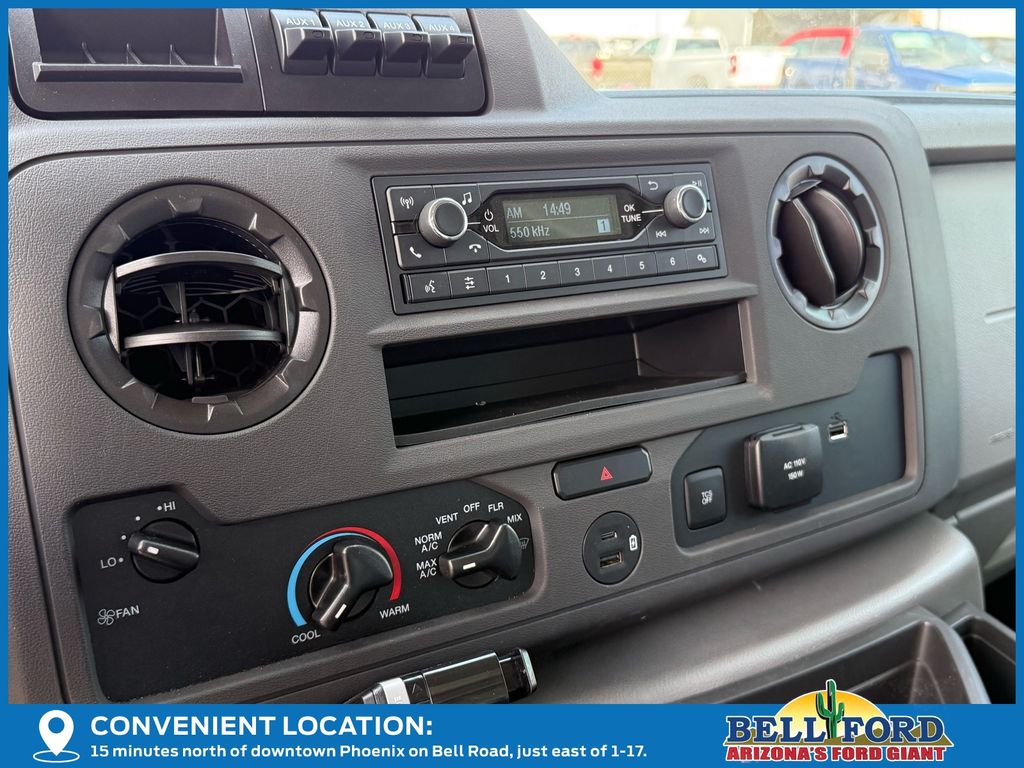 This Ford E-350SD is equipped with the following options: Class I Trailer Towing Package, High Series Exterior Upgrade Package (Chrome Grille and Front Chrome Bumper), Order Code 780A, Power Equipment Group, 2 Speakers, 240 Amp Alternator, 4-Wheel Disc Brakes, 4.10 Axle Ratio, 4.10 Axle Ratio w/Limited-Slip, ABS brakes, Air Conditioning, AM/FM radio, Cruise Control, Driver door bin, Driver's Seat Mounted Armrest, Dual front impact airbags, Dual High Back Buckets, Electronic Stability Control, Engine Block Heater, Frame Pucks (Isolators), Front anti-roll bar, Front Bucket Seats, Front wheel independent suspension, Fully automatic headlights, License Plate Bracket, Passenger door bin, Passenger seat mounted armrest, Power steering, Radio: AM/FM Stereo w/Clock Display & 2 Speakers, Rear View Camera Kit, Tachometer, Tamper Proof Odometer, Telescoping steering wheel, Tilt steering wheel, Traction control, User-Defined Switches, Variably intermittent wipers, Vinyl Bucket Seats, Vinyl Floor Covering, and Voltmeter. Price includes dealer added accessories totaling $23,995.