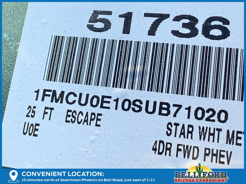This Ford Escape Plug-In Hybrid is equipped with the following options: Equipment Group 700A, 2.5L iVCT, 2.91 Axle Ratio, 4-Wheel Disc Brakes, 6 Speakers, ABS brakes, Air Conditioning, Alloy wheels, AM/FM radio: SiriusXM, AM/FM Stereo, Auto High-beam Headlights, Automatic temperature control, Brake assist, Bumpers: body-color, Compass, Delay-off headlights, Driver door bin, Driver vanity mirror, Dual front impact airbags, Dual front side impact airbags, Electronic Stability Control, Emergency communication system: SYNC 4 911 Assist, FordPass Connect, Four wheel independent suspension, Front anti-roll bar, Front Bucket Seats, Front Center Armrest, Front dual zone A/C, Front fog lights, Front reading lights, Fully automatic headlights, Heated door mirrors, Heated front seats, Heated steering wheel, Heated Vinyl/Cloth Front Sport Contour Bucket Seats, Illuminated entry, Internet access capable: FordPass Connect 4G, Knee airbag, Low tire pressure warning, Navigation system: Connected Navigation, Occupant sensing airbag, Outside temperature display, Overhead airbag, Overhead console, Panic alarm, Passenger door bin, Passenger vanity mirror, Power door mirrors, Power driver seat, Power Liftgate, Power steering, Power windows, Radio data system, Rear anti-roll bar, Rear reading lights, Rear seat center armrest, Rear window defroster, Rear window wiper, Remote keyless entry, Speed control, Speed-sensing steering, Speed-Sensitive Wipers, Split folding rear seat, Spoiler, Steering wheel mounted audio controls, SYNC 4 w/Enhanced Voice Recognition, Telescoping steering wheel, Tilt steering wheel, Traction control, Trip computer, Variably intermittent wipers, and Wheels: 18" Machined-Face Magnetic Aluminum. Price includes: $7000 - Bonus Customer Cash. Exp. 02/02/2026