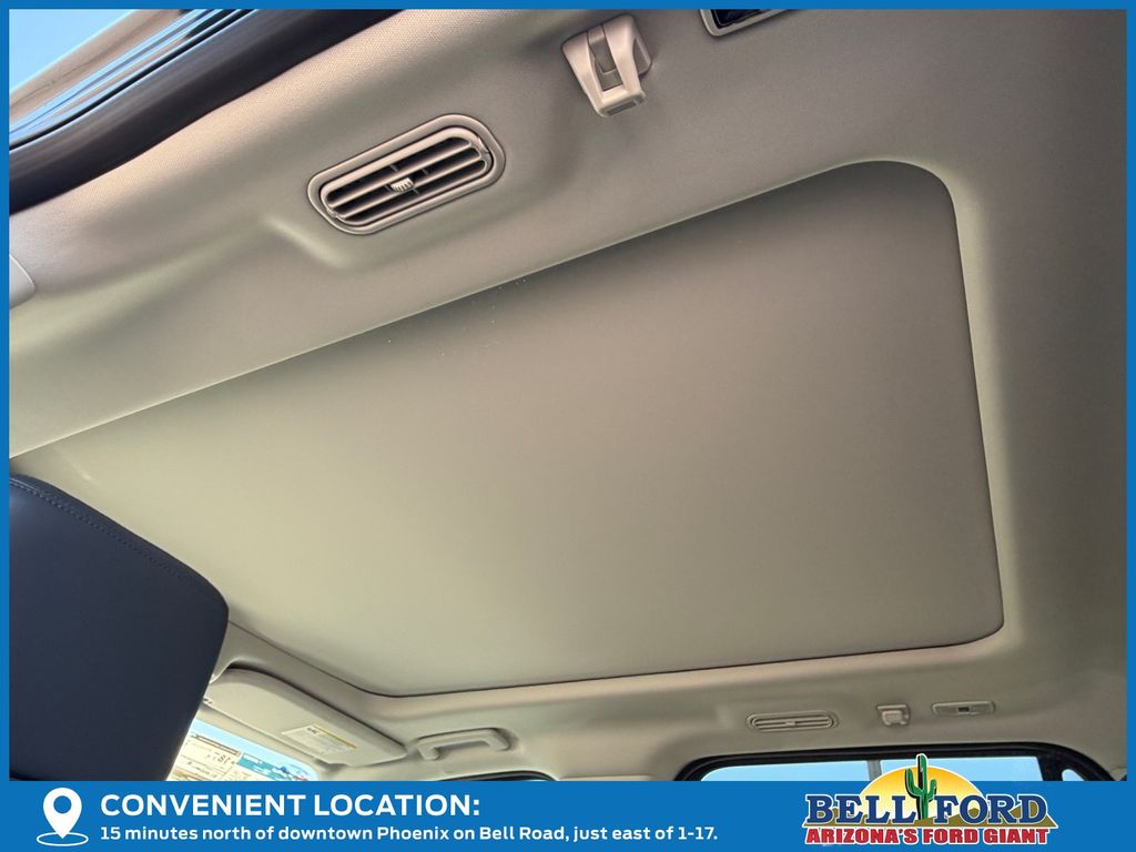 Equipment Group 202A High Package (110V/400W AC Power Outlet, 26mm Engine Radiator, 2nd Row Power-Folding Captain's Chairs, 360-Degree Zone Lighting, 3rd Row Flexible Seating, 3rd Row Vinyl Seats, 4-Door Intelligent Access (Lock/Unlock), ActiveX Front Heated Captain's Chairs, BlueCruise Equipped, Flex Powered Console, Ford Split Gate, Front Side Laminated Glass, Heated Steering Wheel, Heavy-Duty Trailer Tow, Integrated Trailer Brake Control, Memory Driver Seat, Power Panoramic Vista Roof w/Power Sunshade, Power Tilt/Telescopic Steering Wheel w/Memory, Power-Folding Sideview Mirrors w/Autofold, Rain Sensing Wipers, SecuriCode Keyless Entry Keypad, Universal Garage Door Opener, USB Ports, Wheels: 20" Carbonized Gray Bright Machined Aluminum, and Wireless Charging Pad), 3.73 Axle Ratio, 3rd row seats: split-bench, 4-Wheel Disc Brakes, 6 Speakers, ABS brakes, Air Conditioning, Alloy wheels, AM/FM radio: SiriusXM with 360L, Apple CarPlay/Android Auto, Auto High-beam Headlights, Auto-dimming Rear-View mirror, Automatic temperature control, Brake assist, Bumpers: body-color, Cloth Front Captain's Chairs, Compass, Delay-off headlights, Driver door bin, Driver State Detection, Driver vanity mirror, Dual front impact airbags, Dual front side impact airbags, Electronic Stability Control, Emergency communication system: 911 Assist, Exterior Parking Camera Rear, Four wheel independent suspension, Front anti-roll bar, Front Bucket Seats, Front Center Armrest, Front dual zone A/C, Front reading lights, Fully automatic headlights, Heated door mirrors, Illuminated entry, Intersection Assist, Low tire pressure warning, Navigation System, Occupant sensing airbag, Outside temperature display, Overhead airbag, Overhead console, Panic alarm, Passenger door bin, Passenger vanity mirror, Power door mirrors, Power driver seat, Power passenger seat, Power steering, Power windows, Radio data system, Radio: AM/FM Stereo w/MP3 Capable, Rear air conditioning, Rear anti-roll bar, Rear reading lights, Rear window defroster, Rear window wiper, Reclining 3rd row seat, Remote keyless entry, Security system, SiriusXM w/360L, Speed control, Speed-sensing steering, Speed-Sensitive Wipers, Split folding rear seat, Spoiler, Steering wheel mounted audio controls, Tachometer, Telescoping steering wheel, Tilt steering wheel, Traction control, Trip computer, Variably intermittent wipers, Voltmeter, and Wheels: 18" Dark Alloy Painted Aluminum.