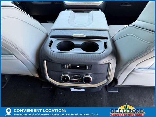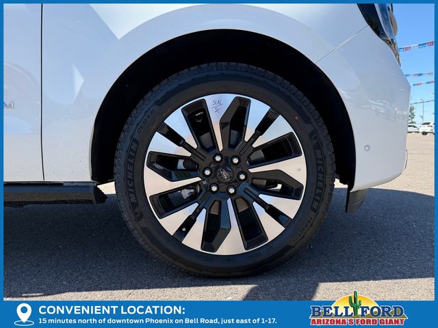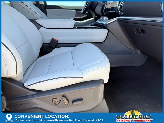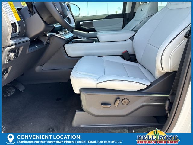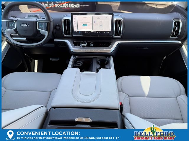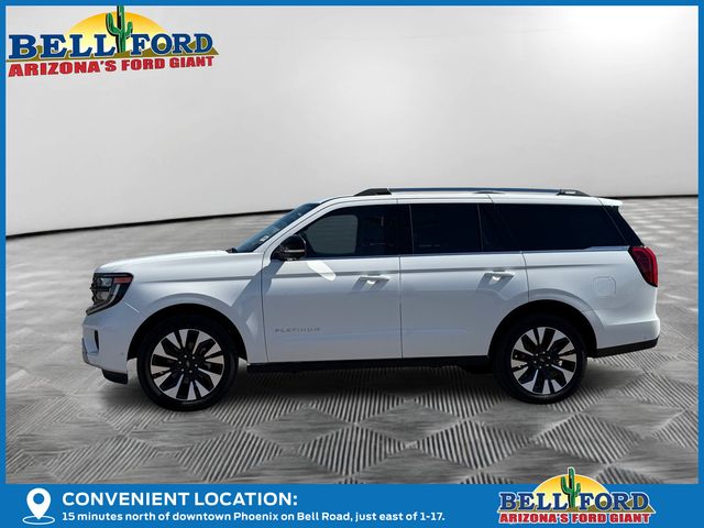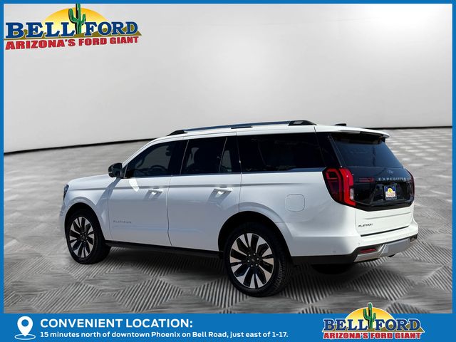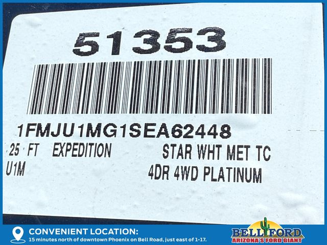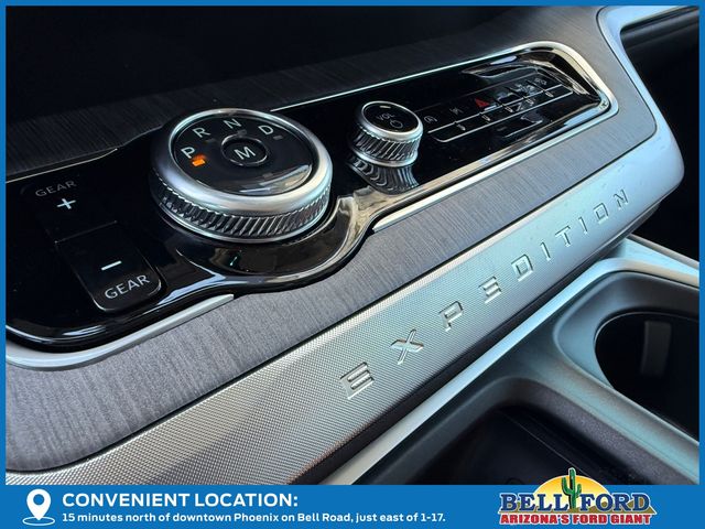 Driver's Package (Continuous Control Damping Suspension, Radio: B&O Unleashed Sound System by Bang & Olufsen, and SiriusXM w/360L), Equipment Group 600A Standard Package (2nd Row Power-Folding Captain's Chairs), Platinum Ultimate Interior Package, Platinum Ultimate Package (Black Headlamp Bezel w/Satin Trim Applique, BlueCruise Equipped (1-Year Plan), Carbon Black Front Bumper w/Lit Grille Bar, Engine Sound Enhancer, Front Door Scuff Plates w/Met Insert & Bright Rear, High Flow Exhaust System, Multicontour Active Motion Lthr Frnt Captains Chairs, Polished Stainless Steel Beltline Molding, Rear Seat Radio Controls, Rear Side Windows Laminated Glass, Satin Aluminum Expedition Lettering On Side & Hood, Satin Aluminum Platinum Badge On Tailgate, and Signature Grille Lighting), 4WD, 10 Speakers, 3.73 Axle Ratio, 3rd row seats: split-bench, 4-Wheel Disc Brakes, ABS brakes, Adjustable pedals, Air Conditioning, Alloy wheels, AM/FM radio: SiriusXM with 360L, Apple CarPlay/Android Auto, Auto High-beam Headlights, Auto-dimming door mirrors, Auto-dimming Rear-View mirror, Automatic temperature control, Brake assist, Bumpers: body-color, Compass, Delay-off headlights, Driver door bin, Driver vanity mirror, Dual front impact airbags, Dual front side impact airbags, Electronic Stability Control, Emergency communication system: 911 Assist, Exterior Parking Camera Rear, Four wheel independent suspension, Front anti-roll bar, Front Bucket Seats, Front Center Armrest, Front dual zone A/C, Front reading lights, Fully automatic headlights, Garage door transmitter, Genuine wood dashboard insert, Genuine wood door panel insert, Heated & Ventilated Leather Front Captain's Chairs, Heated door mirrors, Heated front seats, Heated rear seats, Heated steering wheel, Illuminated entry, Leather steering wheel, Low tire pressure warning, Memory seat, Navigation System, Occupant sensing airbag, Outside temperature display, Overhead airbag, Overhead console, Panic alarm, Passenger door bin, Passenger vanity mirror, Pedal memory, Power door mirrors, Power driver seat, Power moonroof: Vista Roof, Power passenger seat, Power steering, Power windows, Radio data system, Radio: B&O Sound System by Bang & Olufsen, Rain sensing wipers, Rear air conditioning, Rear anti-roll bar, Rear reading lights, Rear window defroster, Rear window wiper, Reclining 3rd row seat, Remote keyless entry, Security system, Speed control, Speed-sensing steering, Speed-Sensitive Wipers, Split folding rear seat, Spoiler, Steering wheel memory, Steering wheel mounted audio controls, Tachometer, Telescoping steering wheel, Tilt steering wheel, Traction control, Trip computer, Turn signal indicator mirrors, Variably intermittent wipers, Ventilated front seats, Voltmeter, and Wheels: 20" Ebony Bright Machined Aluminum.