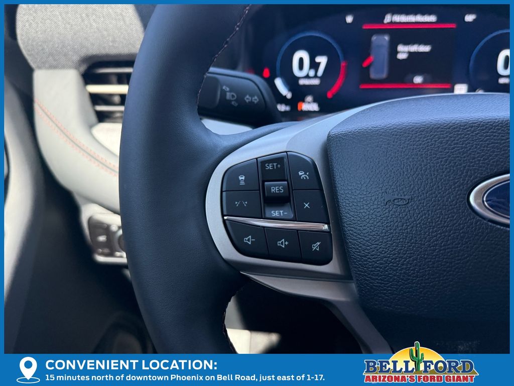 This Ford Explorer is equipped with the following options: Active Comfort Package (Front Fascia, Heated ActiveX Seating Material Captain's Chairs, Heated Steering Wheel, Remote Start System, Second Row HVAC Controls, and Universal Garage Door Opener (UGDO)), Equipment Group 200A Standard Package, 2nd Row 35/30/35 Bench w/E-Z Entry & Armrest, 3.58 Non-Limited Slip Rear Axle, 3rd row seats: bench, 4-Wheel Disc Brakes, 6 Speakers, ABS brakes, Air Conditioning, Alloy wheels, AM/FM radio: SiriusXM with 360L, AM/FM Stereo, Apple CarPlay/Android Auto, Auto High-beam Headlights, Automatic temperature control, Brake assist, Bumpers: body-color, Compass, Delay-off headlights, Driver door bin, Driver vanity mirror, Dual front impact airbags, Dual front side impact airbags, Electronic Stability Control, Emergency communication system: 911 Assist, Exterior Parking Camera Rear, Four wheel independent suspension, Front anti-roll bar, Front Bucket Seats, Front Center Armrest, Front dual zone A/C, Front reading lights, Fully automatic headlights, Heated door mirrors, Heated front seats, Illuminated entry, Internet access capable: FordPass Connect 5G, Knee airbag, Leather steering wheel, Low tire pressure warning, Navigation System, Occupant sensing airbag, Outside temperature display, Overhead airbag, Overhead console, Panic alarm, Passenger door bin, Passenger vanity mirror, Power door mirrors, Power driver seat, Power Liftgate, Power passenger seat, Power steering, Power windows, Rear air conditioning, Rear anti-roll bar, Rear reading lights, Rear window defroster, Rear window wiper, Remote keyless entry, Security system, Speed control, Speed-sensing steering, Speed-Sensitive Wipers, Split folding rear seat, Spoiler, Steering wheel mounted audio controls, Tachometer, Telescoping steering wheel, Tilt steering wheel, Traction control, Trip computer, Unique Heated Cloth Captain's Chairs, Variably intermittent wipers, and Wheels: 18" Sparkle Silver-Painted Aluminum. Price includes: $1000 - Final Days Mega Bonus Cash. Exp. 01/02/2026 $1500 - Bonus Customer Cash. Exp. 01/05/2026