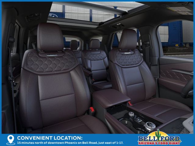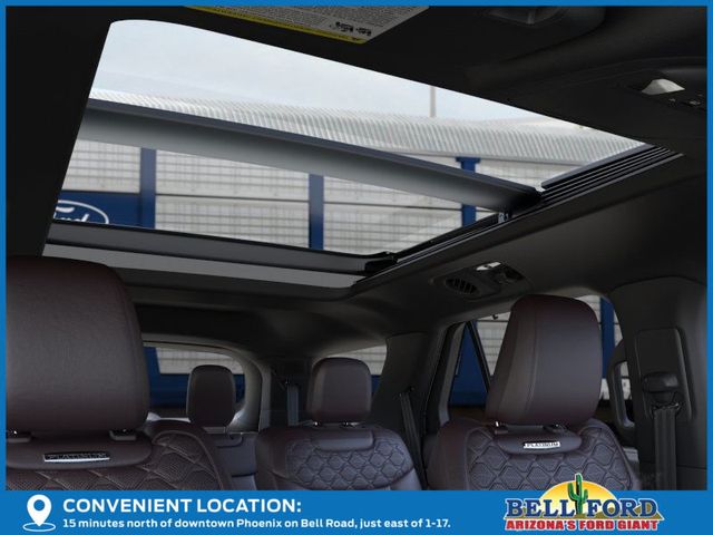 Equipment Group 600A Standard Package, Lux Leather Package (Leather Seating Surfaces Sport Captain Chairs, Platinum Badges on Front Row Seats, Quilting & Stitching on Door Panels, and Quilting & Stitching on Seats), Ultimate Package (Wheels: 21" Dark Alloy-Painted Machined Aluminum), 4WD, 14 Speakers, 3.58 Non-Limited Slip Rear Axle, 3rd row seats: bench, 4-Wheel Disc Brakes, ABS brakes, ActiveX Trimmed Sport Captain's Chairs, Air Conditioning, Alloy wheels, AM/FM radio: SiriusXM with 360L, Apple CarPlay/Android Auto, Auto High-beam Headlights, Auto-dimming door mirrors, Auto-dimming Rear-View mirror, Automatic temperature control, Brake assist, Bumpers: body-color, Compass, Delay-off headlights, Driver door bin, Driver vanity mirror, Dual front impact airbags, Dual front side impact airbags, Electronic Stability Control, Emergency communication system: 911 Assist, Exterior Parking Camera Rear, Ford BlueCruise Equipped (1-Year Plan) (DISC), Four wheel independent suspension, Front anti-roll bar, Front Bucket Seats, Front Center Armrest, Front dual zone A/C, Front fog lights, Front reading lights, Fully automatic headlights, Garage door transmitter, Heated door mirrors, Heated front seats, Heated rear seats, Heated steering wheel, Illuminated entry, Knee airbag, Leather steering wheel, Low tire pressure warning, Memory seat, Navigation System, Occupant sensing airbag, Outside temperature display, Overhead airbag, Overhead console, Panic alarm, Passenger door bin, Passenger vanity mirror, Power door mirrors, Power driver seat, Power Liftgate, Power moonroof, Power passenger seat, Power steering, Power windows, Radio data system, Radio: B&O Sound System by Bang & Olufsen w/HD, Rain sensing wipers, Rear air conditioning, Rear anti-roll bar, Rear reading lights, Rear window defroster, Rear window wiper, Remote keyless entry, Security system, Speed control, Speed-sensing steering, Speed-Sensitive Wipers, Split folding rear seat, Spoiler, Steering wheel mounted audio controls, Tachometer, Telescoping steering wheel, Tilt steering wheel, Traction control, Trip computer, Turn signal indicator mirrors, Variably intermittent wipers, Ventilated front seats, and Wheels: 20" Luster Nickel-Painted Aluminum. Price includes: $1500 - Bonus Customer Cash. Exp. 01/05/2026 $500 - Retail Bonus Cash. Exp. 11/19/2025