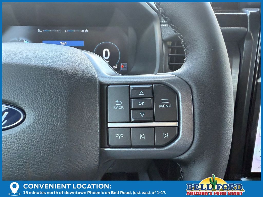 This Ford F-150 Lightning is equipped with the following options: Equipment Group 312A Standard, Max Trailer Tow Package (E-Locker, Hill Decent Control, and Trailer Brake Controller), 4-Wheel Disc Brakes, 8 Speakers, ABS brakes, ActiveX Trimmed Heated Front Seats, Adjustable pedals, Air Conditioning, Alloy wheels, Auto High-beam Headlights, Auto-dimming Rear-View mirror, Automatic temperature control, Brake assist, Bumpers: body-color, Compass, Delay-off headlights, Driver door bin, Driver vanity mirror, Dual front impact airbags, Dual front side impact airbags, Electronic Stability Control, Emergency communication system: SYNC 4 911 Assist, Four wheel independent suspension, Front anti-roll bar, Front Bucket Seats, Front Center Armrest, Front dual zone A/C, Front reading lights, Fully automatic headlights, Heated door mirrors, Heated front seats, Heated steering wheel, Illuminated entry, Internet access capable: FordPass Connect 4G, Knee airbag, Low tire pressure warning, Mobile Power Cord (120/240V), Navigation system: Connected Navigation, Occupant sensing airbag, Outside temperature display, Overhead airbag, Overhead console, Panic alarm, Passenger door bin, Passenger vanity mirror, Power door mirrors, Power driver seat, Power passenger seat, Power steering, Power windows, Radio data system, Radio: B&O Sound System by Bang & Olufsen, Rear anti-roll bar, Rear reading lights, Rear step bumper, Rear window defroster, Remote keyless entry, Security system, Speed control, Speed-sensing steering, Split folding rear seat, Steering wheel mounted audio controls, SYNC 4A w/Enhanced Voice Recognition, Tailgate Step w/Tailgate Work Surface, Telescoping steering wheel, Tilt steering wheel, Traction control, Trip computer, Turn signal indicator mirrors, Variably intermittent wipers, and Wheels: 20" Alloy Dark Carbonized Gray. Price includes: $1000 - Truck Month Retail Bonus Cash. Exp. 03/31/2026 $5000 - Retail Customer Cash. Exp. 03/31/2026