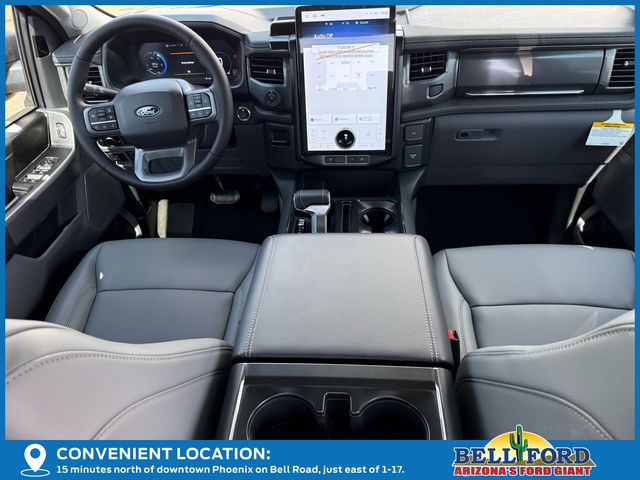 Equipment Group 312A Standard, 4-Wheel Disc Brakes, 8 Speakers, ABS brakes, ActiveX Trimmed Heated Front Seats, Adjustable pedals, Air Conditioning, Alloy wheels, Auto High-beam Headlights, Auto-dimming Rear-View mirror, Automatic temperature control, Brake assist, Bumpers: body-color, Compass, Delay-off headlights, Driver door bin, Driver vanity mirror, Dual front impact airbags, Dual front side impact airbags, Electronic Stability Control, Emergency communication system: SYNC 4 911 Assist, First Aid Kit w/Ford Logo, Four wheel independent suspension, Front anti-roll bar, Front Bucket Seats, Front Center Armrest, Front dual zone A/C, Front reading lights, Fully automatic headlights, Heated door mirrors, Heated front seats, Heated steering wheel, Illuminated entry, Knee airbag, Low tire pressure warning, Mobile Power Cord (120/240V), Navigation system: Connected Navigation, Occupant sensing airbag, Outside temperature display, Overhead airbag, Overhead console, Panic alarm, Passenger door bin, Passenger vanity mirror, Power door mirrors, Power driver seat, Power passenger seat, Power steering, Power windows, Pro Power Onboard - 9.6 kW Exportable Power, Radio data system, Radio: B&O Sound System by Bang & Olufsen, Rear anti-roll bar, Rear reading lights, Rear step bumper, Rear window defroster, Remote keyless entry, Security system, Speed control, Speed-sensing steering, Split folding rear seat, Steering wheel mounted audio controls, SYNC 4A w/Enhanced Voice Recognition, Tailgate Step w/Tailgate Work Surface, Telescoping steering wheel, Tilt steering wheel, Traction control, Trip computer, Turn signal indicator mirrors, Variably intermittent wipers, and Wheels: 20" Alloy Dark Carbonized Gray.