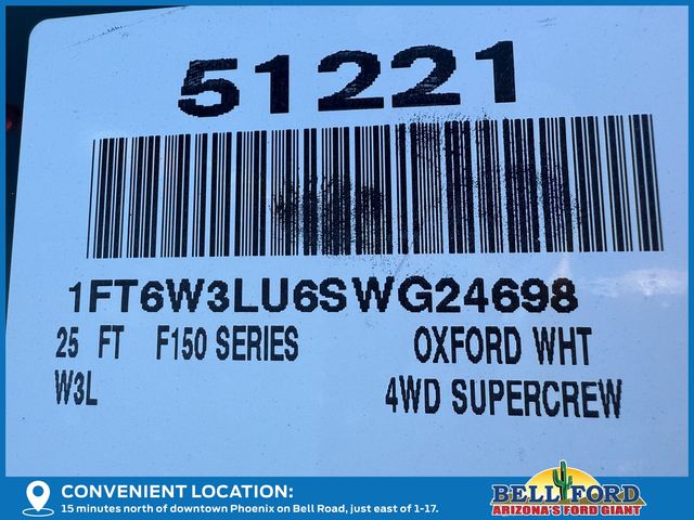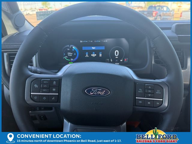 Equipment Group 312A Standard, 4-Wheel Disc Brakes, 8 Speakers, ABS brakes, ActiveX Trimmed Heated Front Seats, Adjustable pedals, Air Conditioning, Alloy wheels, Auto High-beam Headlights, Auto-dimming Rear-View mirror, Automatic temperature control, Brake assist, Bumpers: body-color, Compass, Delay-off headlights, Driver door bin, Driver vanity mirror, Dual front impact airbags, Dual front side impact airbags, Electronic Stability Control, Emergency communication system: SYNC 4 911 Assist, First Aid Kit w/Ford Logo, Four wheel independent suspension, Front anti-roll bar, Front Bucket Seats, Front Center Armrest, Front dual zone A/C, Front reading lights, Fully automatic headlights, Heated door mirrors, Heated front seats, Heated steering wheel, Illuminated entry, Knee airbag, Low tire pressure warning, Mobile Power Cord (120/240V), Navigation system: Connected Navigation, Occupant sensing airbag, Outside temperature display, Overhead airbag, Overhead console, Panic alarm, Passenger door bin, Passenger vanity mirror, Power door mirrors, Power driver seat, Power passenger seat, Power steering, Power windows, Radio data system, Radio: B&O Sound System by Bang & Olufsen, Rear anti-roll bar, Rear reading lights, Rear step bumper, Rear window defroster, Remote keyless entry, Security system, Speed control, Speed-sensing steering, Split folding rear seat, Steering wheel mounted audio controls, SYNC 4A w/Enhanced Voice Recognition, Tailgate Step w/Tailgate Work Surface, Telescoping steering wheel, Tilt steering wheel, Traction control, Trip computer, Turn signal indicator mirrors, Variably intermittent wipers, and Wheels: 20" Alloy Dark Carbonized Gray.