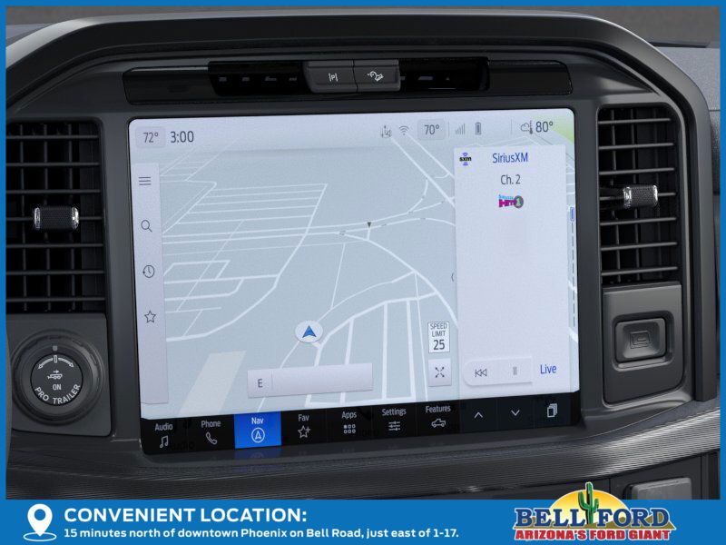 This Ford F-150 is equipped with the following options: Equipment Group 501A Mid (6" Angular Bright Anodized Step Bar, Illuminated Driver & Passenger Visors, Power-Sliding Rear Window, and Wheels: 20" Chrome-Like PVD), FX4 Off-Road Package (4x4 FX4 Off-Road Bodyside Decal, Hill Descent Control, Monotube Rear Shocks, Off-Road Tuned Front Shock Absorbers, Rock Crawl Mode, and Tray Style Floor Liner w/o Carpet Mats), Tow/Haul Package, 4WD, 4-Wheel Disc Brakes, 8 Speakers, ABS brakes, ActiveX Trimmed Bucket Seats, Adjustable pedals, Air Conditioning, Alloy wheels, AM/FM radio: SiriusXM with 360L, Auto High-beam Headlights, Auto-dimming door mirrors, Auto-dimming Rear-View mirror, Automatic temperature control, Brake assist, Bumpers: chrome, Chrome wheels, Compass, Delay-off headlights, Driver door bin, Driver vanity mirror, Dual front impact airbags, Dual front side impact airbags, Electronic Stability Control, Emergency communication system: SYNC 4 911 Assist, First Aid Kit w/Ford Logo, Front anti-roll bar, Front Bucket Seats, Front Center Armrest, Front dual zone A/C, Front fog lights, Front reading lights, Front wheel independent suspension, Fully automatic headlights, Garage door transmitter, Heated door mirrors, Heated front seats, Heated steering wheel, Illuminated entry, Internet access capable: FordPass Connect 5G, Low tire pressure warning, Memory seat, Navigation system: Connected Navigation, Occupant sensing airbag, Outside temperature display, Overhead airbag, Overhead console, Panic alarm, Passenger door bin, Passenger vanity mirror, Pedal memory, Power door mirrors, Power driver seat, Power passenger seat, Power steering, Power windows, Radio data system, Radio: B&O Sound System by Bang & Olufsen, Rain sensing wipers, Rear reading lights, Rear seat center armrest, Rear step bumper, Rear window defroster, Remote keyless entry, Security system, Speed control, Split folding rear seat, Steering wheel mounted audio controls, SYNC 4 w/Enhanced Voice Recognition, Tachometer, Telescoping steering wheel, Tilt steering wheel, Traction control, Trip computer, Turn signal indicator mirrors, Variably intermittent wipers, Ventilated front seats, Voltmeter, and Wheels: 18" Chrome-Like PVD. Price includes: $1000 - Final Days Mega Bonus Cash. Exp. 01/02/2026 $2000 - Retail Customer Cash. Exp. 01/05/2026