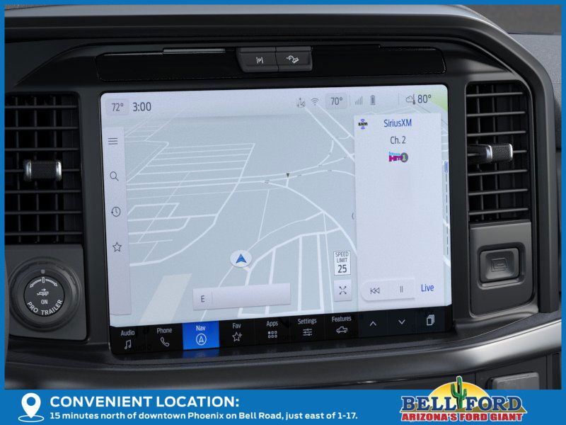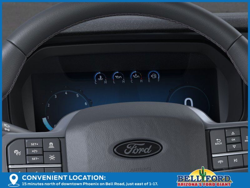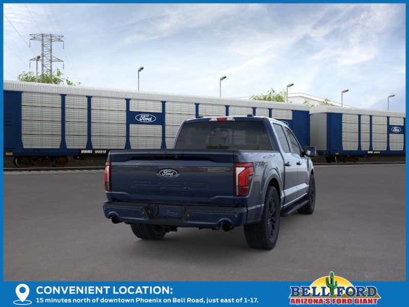 This Ford F-150 is equipped with the following options: Equipment Group 502A High (2nd Row Heated Seats, Ambient Lighting - Ice Blue Color Only, Heads-Up Display, Illuminated Driver & Passenger Visors, Power-Sliding Rear Window, Radio: B&O Unleashed Sound System by Bang & Olufsen, and Wheels: 20" Chrome-Like PVD), FX4 Off-Road Package (4x4 FX4 Off-Road Bodyside Decal, Hill Descent Control, Monotube Rear Shocks, Off-Road Tuned Front Shock Absorbers, Rock Crawl Mode, and Tray Style Floor Liner w/o Carpet Mats), Mobile Office Package (Console Worksurface, Partitioned Lockable Rear Storage, and Wireless Charging), 4WD, 4-Wheel Disc Brakes, 8 Speakers, ABS brakes, ActiveX Trimmed Bucket Seats, Adjustable pedals, Air Conditioning, Alloy wheels, AM/FM radio: SiriusXM with 360L, Auto High-beam Headlights, Auto-dimming door mirrors, Auto-dimming Rear-View mirror, Automatic temperature control, Brake assist, Bumpers: chrome, Chrome wheels, Compass, Delay-off headlights, Driver door bin, Driver vanity mirror, Dual front impact airbags, Dual front side impact airbags, Electronic Stability Control, Emergency communication system: SYNC 4 911 Assist, Front anti-roll bar, Front Bucket Seats, Front Center Armrest, Front dual zone A/C, Front fog lights, Front reading lights, Front wheel independent suspension, Fully automatic headlights, Garage door transmitter, Heated door mirrors, Heated front seats, Heated steering wheel, Illuminated entry, Internet access capable: FordPass Connect 5G, Low tire pressure warning, Memory seat, Navigation system: Connected Navigation, Occupant sensing airbag, Outside temperature display, Overhead airbag, Overhead console, Panic alarm, Passenger door bin, Passenger vanity mirror, Pedal memory, Power door mirrors, Power driver seat, Power passenger seat, Power steering, Power windows, Radio data system, Radio: B&O Sound System by Bang & Olufsen, Rain sensing wipers, Rear reading lights, Rear seat center armrest, Rear step bumper, Rear window defroster, Remote keyless entry, Security system, Speed control, Split folding rear seat, Steering wheel mounted audio controls, SYNC 4 w/Enhanced Voice Recognition, Tachometer, Telescoping steering wheel, Tilt steering wheel, Traction control, Trip computer, Turn signal indicator mirrors, Variably intermittent wipers, Ventilated front seats, Voltmeter, and Wheels: 18" Chrome-Like PVD. Price includes: $1000 - Final Days Mega Bonus Cash. Exp. 01/02/2026 $2000 - Retail Customer Cash. Exp. 01/05/2026