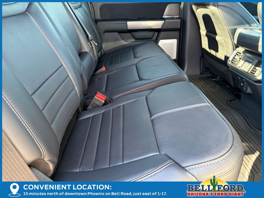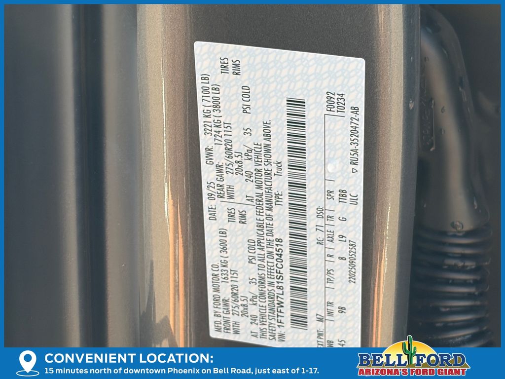 This Ford F-150 is equipped with the following options: Equipment Group 702A High (Heads-Up Display, Radio: B&O Unleashed Sound System by Bang & Olufsen, and Twin Panel Moonroof), FX4 Off-Road Package (4x4 FX4 Off-Road Bodyside Decal, Hill Descent Control, Monotube Rear Shocks, Off-Road Tuned Front Shock Absorbers, and Rock Crawl Mode), 4WD, 4-Wheel Disc Brakes, 8 Speakers, ABS brakes, Adjustable pedals, Air Conditioning, Alloy wheels, AM/FM radio: SiriusXM with 360L, Auto High-beam Headlights, Auto tilt-away steering wheel, Auto-dimming door mirrors, Auto-dimming Rear-View mirror, Automatic temperature control, Brake assist, Bumpers: body-color, Compass, Delay-off headlights, Driver door bin, Driver vanity mirror, Dual front impact airbags, Dual front side impact airbags, Electronic Locking w/3.55 Axle Ratio, Electronic Stability Control, Emergency communication system: SYNC 4 911 Assist, Front anti-roll bar, Front Bucket Seats, Front Center Armrest, Front dual zone A/C, Front fog lights, Front reading lights, Front wheel independent suspension, Fully automatic headlights, Garage door transmitter, Heated door mirrors, Heated front seats, Heated rear seats, Heated steering wheel, Illuminated entry, Leather steering wheel, Low tire pressure warning, Memory seat, Navigation system: Connected Navigation, Occupant sensing airbag, Outside temperature display, Overhead airbag, Overhead console, Panic alarm, Passenger door bin, Passenger vanity mirror, Pedal memory, Power door mirrors, Power driver seat, Power passenger seat, Power steering, Power windows, Radio data system, Radio: B&O Sound System by Bang & Olufsen, Rain sensing wipers, Rear reading lights, Rear seat center armrest, Rear step bumper, Rear window defroster, Remote keyless entry, Security system, Speed control, Split folding rear seat, Steering wheel memory, Steering wheel mounted audio controls, SYNC 4 w/Enhanced Voice Recognition, Tachometer, Telescoping steering wheel, Tilt steering wheel, Traction control, Tray Style Floor Liner, Trip computer, Turn signal indicator mirrors, Unique Multi-Contour Leather Bucket Seats, Variably intermittent wipers, Ventilated front seats, Voltmeter, and Wheels: 20" Painted Gloss Ebony Black. Price includes: $1000 - Truck Month Retail Bonus Cash. Exp. 03/31/2026 $2000 - Retail Customer Cash. Exp. 03/31/2026