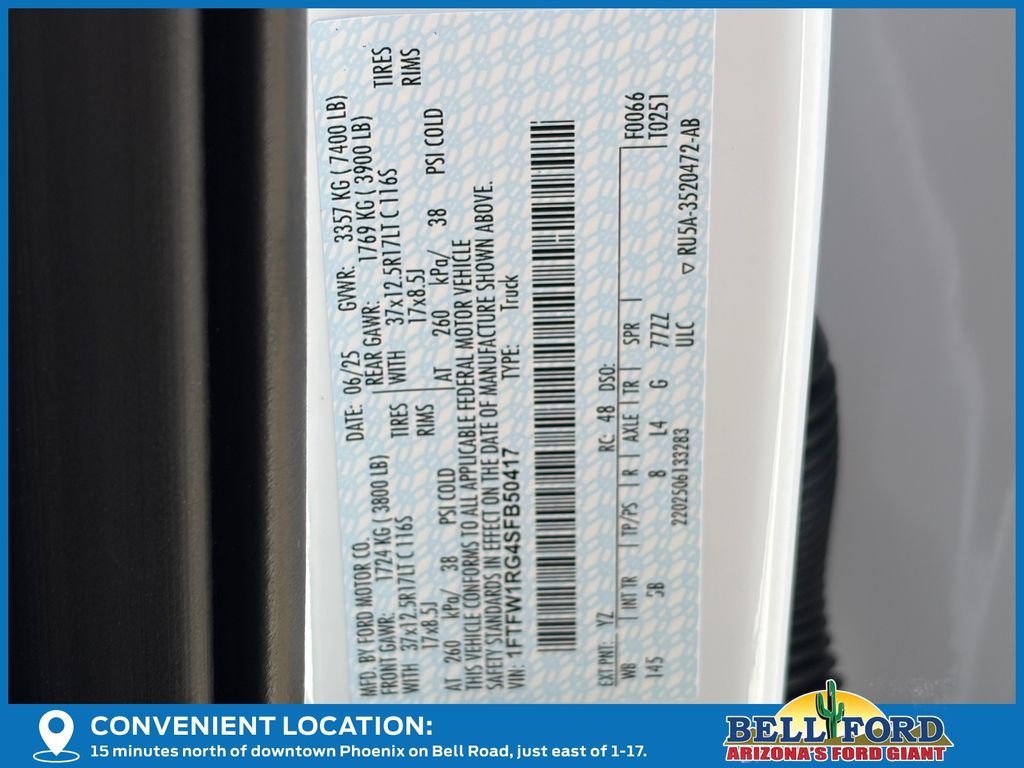 - VIN : 1FTFW1RG4SFB50417