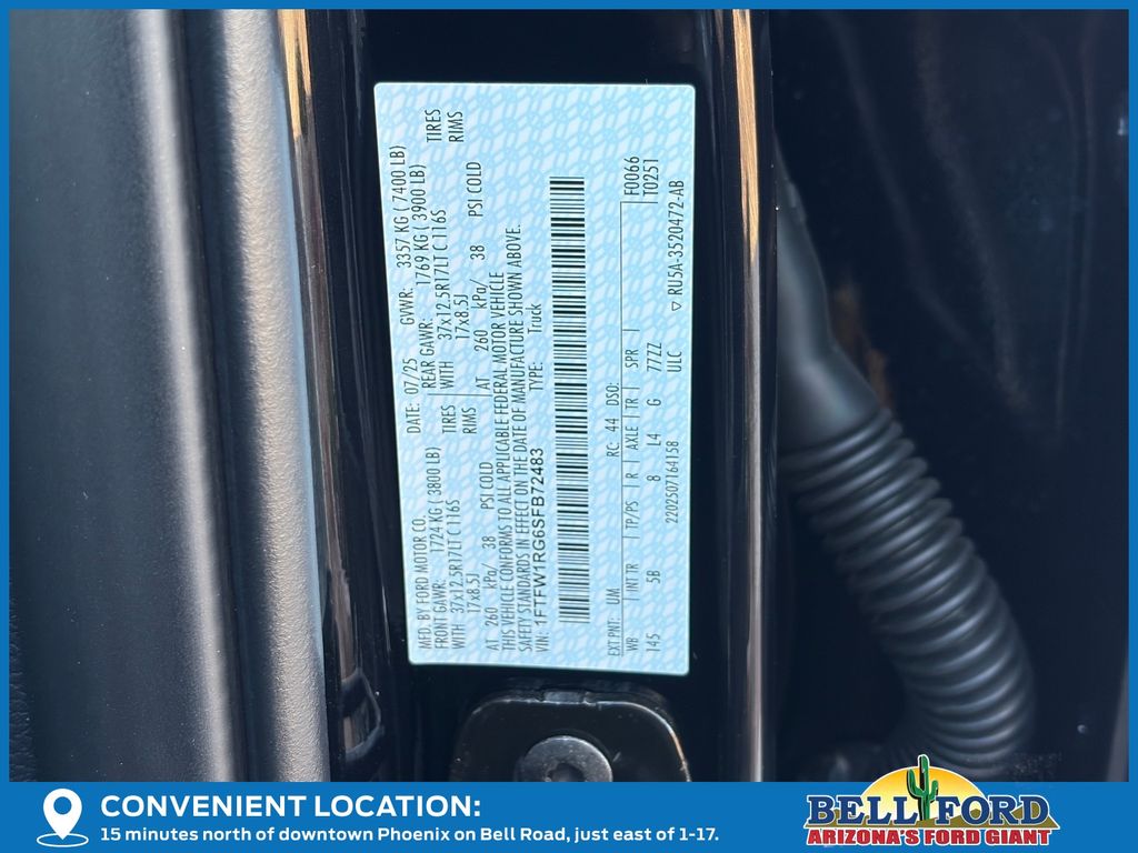 Equipment Group 802A Raptor 37 (Carbon Fiber Interior Appliques, Dual Valve Shocks, Modular Front Bumper, RECARO Alcantara Suede Front Seats, and Wheels: Raptor 37 Unique 17" Cast Aluminum), 4WD, 14 Speakers, 17" Cast Aluminum Wheels, 4-Wheel Disc Brakes, ABS brakes, Adjustable pedals, Air Conditioning, Alloy wheels, AM/FM radio: SiriusXM with 360L, Auto High-beam Headlights, Auto tilt-away steering wheel, Auto-dimming door mirrors, Auto-dimming Rear-View mirror, Automatic temperature control, Brake assist, Bumpers: body-color, Compass, Delay-off headlights, Driver door bin, Driver vanity mirror, Dual front impact airbags, Dual front side impact airbags, Electronic Locking w/4.10 Axle Ratio, Electronic Stability Control, Emergency communication system: SYNC 4 911 Assist, Front anti-roll bar, Front Bucket Seats, Front Center Armrest, Front dual zone A/C, Front fog lights, Front reading lights, Front wheel independent suspension, Fully automatic headlights, Garage door transmitter, Heads-Up Display, Heated door mirrors, Heated front seats, Heated rear seats, Heated steering wheel, Illuminated entry, Lane Departure Warning System, Leather steering wheel, Leather Trimmed Seats, Low tire pressure warning, Memory seat, Navigation system: Connected Navigation, Occupant sensing airbag, Outside temperature display, Overhead airbag, Overhead console, Panic alarm, Passenger door bin, Passenger vanity mirror, Pedal memory, Power door mirrors, Power driver seat, Power passenger seat, Power steering, Power windows, Radio data system, Radio: B&O Unleashed Sound System by Bang & Olufsen, Rain sensing wipers, Rear reading lights, Rear step bumper, Rear window defroster, Remote keyless entry, Security system, Speed control, Speed-sensing steering, Split folding rear seat, Steering wheel memory, Steering wheel mounted audio controls, SYNC 4 w/Enhanced Voice Recognition, Tachometer, Telescoping steering wheel, Tilt steering wheel, Tough Bed Spray-In Bedliner, Traction control, Trip computer, Turn signal indicator mirrors, Twin Panel Moonroof, Variably intermittent wipers, and Ventilated front seats.