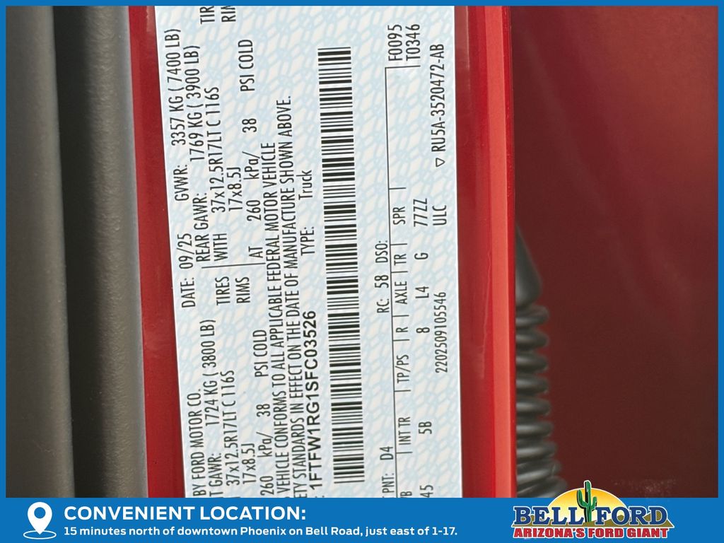 - VIN : 1FTFW1RG1SFC03526