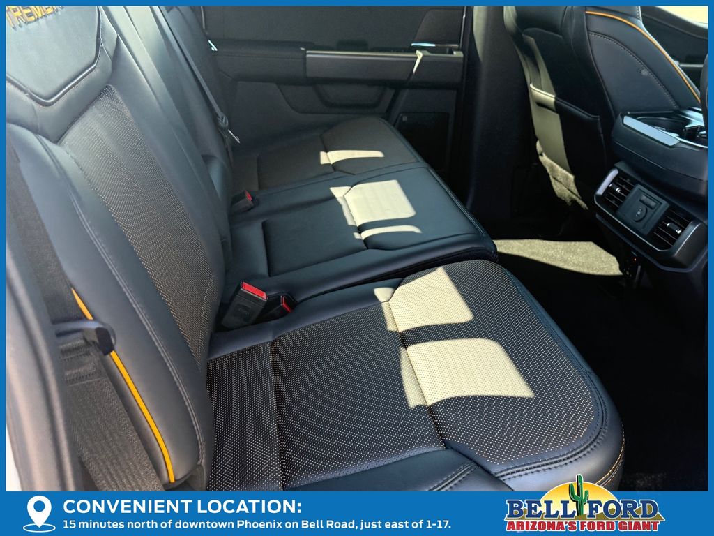 This Ford F-150 is equipped with the following options: Bed Utility Package (4 Pickup Box Tie-Down Plates, LED Box Lighting, and Power Tailgate), Equipment Group 402A High (2nd Row Heated Seats, Ambient Lighting, Auto-Dimming Rear-View Mirror, Front Axle w/Torsen Differential, Heads-Up Display, Heated Steering Wheel, LED Taillamps, Media Bin Door, Modular Front Bumper & Carbon Black Rear Bumper, Power Glass Heated Sideview Mirrors, Power-Adjustable Pedals w/Memory, Premium Wrapped Steering Wheel, Radio: B&O Unleashed Sound System by Bang & Olufsen, Rain-Sensing Wipers, Two-Speed Automatic AWD w/Mechanical Locking 4WD, Unique Tremor Leather-Trimmed Bucket Seats, and Universal Garage Door Opener), GVWR: 7,100 lbs Payload Package, Mobile Office Package (Console Worksurface, Partitioned Lockable Rear Storage, and Wireless Charging), Tow/Haul Package (Integrated Trailer Brake Controller), 4WD, 4-Wheel Disc Brakes, 8 Speakers, ABS brakes, Adjustable pedals, Air Conditioning, Alloy wheels, AM/FM radio: SiriusXM with 360L, Auto High-beam Headlights, Auto-dimming door mirrors, Auto-dimming Rear-View mirror, Automatic temperature control, Brake assist, Bumpers: body-color, Compass, Delay-off headlights, Driver door bin, Driver vanity mirror, Dual front impact airbags, Dual front side impact airbags, Electronic Locking w/3.73 Axle Ratio, Electronic Stability Control, Emergency communication system: SYNC 4 911 Assist, Front anti-roll bar, Front Bucket Seats, Front Center Armrest, Front dual zone A/C, Front fog lights, Front reading lights, Front wheel independent suspension, Fully automatic headlights, Heated door mirrors, Heated front seats, Illuminated entry, Internet access capable: FordPass Connect 5G, Low tire pressure warning, Navigation system: Connected Navigation, Occupant sensing airbag, Outside temperature display, Overhead airbag, Overhead console, Panic alarm, Passenger door bin, Passenger vanity mirror, Power door mirrors, Power driver seat, Power passenger seat, Power steering, Power windows, Radio data system, Radio: B&O Sound System by Bang & Olufsen, Rear reading lights, Rear step bumper, Rear window defroster, Remote keyless entry, Security system, Speed control, Split folding rear seat, Steering wheel mounted audio controls, SYNC 4 w/Enhanced Voice Recognition, Tachometer, Tailgate Step w/Tailgate Work Surface, Telescoping steering wheel, Tilt steering wheel, Traction control, Trip computer, Turn signal indicator mirrors, Twin Panel Moonroof, Unique Sport Cloth 40/Console/40 Power Front Seat, Variably intermittent wipers, Voltmeter, and Wheels: 18" Alloy w/Dark Matte Finish. Price includes: $2000 - Retail Customer Cash. Exp. 03/31/2026