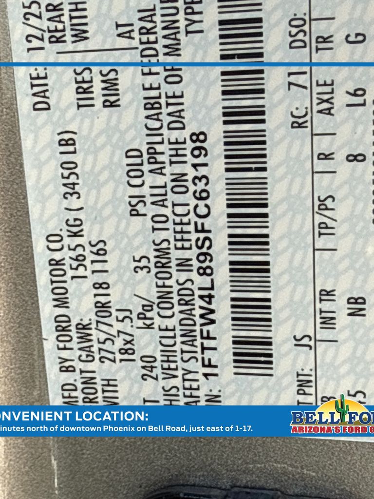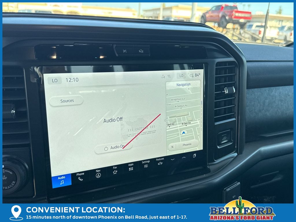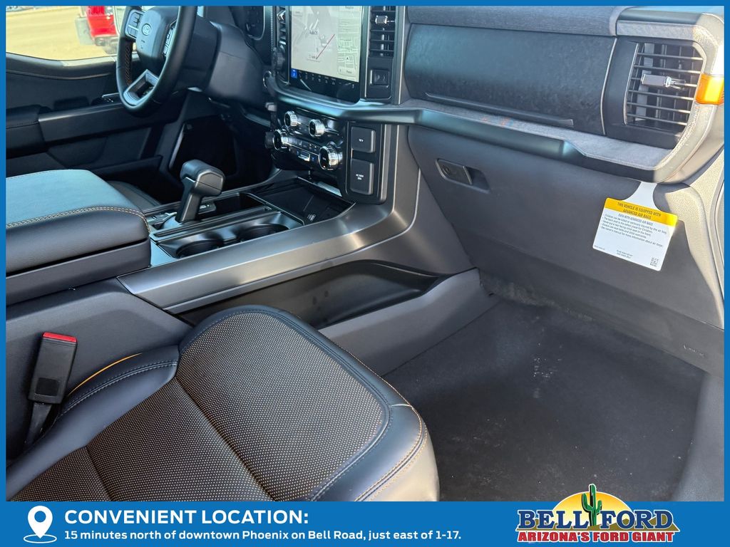 This Ford F-150 is equipped with the following options: Bed Utility Package (4 Pickup Box Tie-Down Plates, LED Box Lighting, and Power Tailgate), Equipment Group 402A High (2nd Row Heated Seats, Ambient Lighting, Auto-Dimming Rear-View Mirror, Front Axle w/Torsen Differential, Heads-Up Display, Heated Steering Wheel, LED Taillamps, Media Bin Door, Modular Front Bumper & Carbon Black Rear Bumper, Power Glass Heated Sideview Mirrors, Power-Adjustable Pedals w/Memory, Premium Wrapped Steering Wheel, Radio: B&O Unleashed Sound System by Bang & Olufsen, Rain-Sensing Wipers, Two-Speed Automatic AWD w/Mechanical Locking 4WD, Unique Tremor Leather-Trimmed Bucket Seats, and Universal Garage Door Opener), GVWR: 7,100 lbs Payload Package, Mobile Office Package (Console Worksurface, Partitioned Lockable Rear Storage, and Wireless Charging), Tow/Haul Package (Integrated Trailer Brake Controller), 4WD, 4-Wheel Disc Brakes, 8 Speakers, ABS brakes, Adjustable pedals, Air Conditioning, Alloy wheels, AM/FM radio: SiriusXM with 360L, Auto High-beam Headlights, Auto-dimming door mirrors, Auto-dimming Rear-View mirror, Automatic temperature control, Brake assist, Bumpers: body-color, Compass, Delay-off headlights, Driver door bin, Driver vanity mirror, Dual front impact airbags, Dual front side impact airbags, Electronic Locking w/3.73 Axle Ratio, Electronic Stability Control, Emergency communication system: SYNC 4 911 Assist, First Aid Kit w/Ford Logo, Front anti-roll bar, Front Bucket Seats, Front Center Armrest, Front dual zone A/C, Front fog lights, Front reading lights, Front wheel independent suspension, Fully automatic headlights, Heated door mirrors, Heated front seats, Illuminated entry, Internet access capable: FordPass Connect 5G, Low tire pressure warning, Navigation system: Connected Navigation, Occupant sensing airbag, Outside temperature display, Overhead airbag, Overhead console, Panic alarm, Passenger door bin, Passenger vanity mirror, Power door mirrors, Power driver seat, Power passenger seat, Power steering, Power windows, Radio data system, Radio: B&O Sound System by Bang & Olufsen, Rear reading lights, Rear step bumper, Rear window defroster, Remote keyless entry, Security system, Speed control, Split folding rear seat, Steering wheel mounted audio controls, SYNC 4 w/Enhanced Voice Recognition, Tachometer, Tailgate Step w/Tailgate Work Surface, Telescoping steering wheel, Tilt steering wheel, Traction control, Trip computer, Turn signal indicator mirrors, Unique Sport Cloth 40/Console/40 Power Front Seat, Variably intermittent wipers, Voltmeter, and Wheels: 18" Alloy w/Dark Matte Finish. Price includes: $2000 - Retail Customer Cash. Exp. 03/31/2026