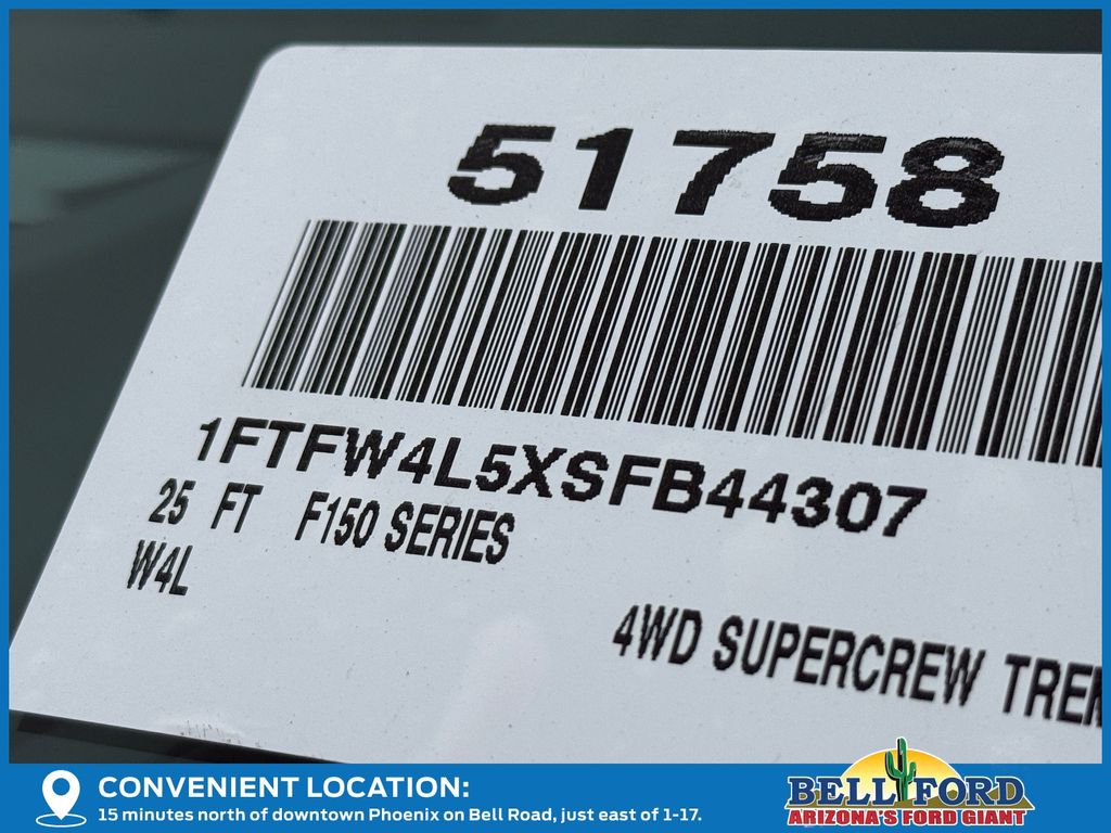 This Ford F-150 is equipped with the following options: Bed Utility Package (4 Pickup Box Tie-Down Plates, LED Box Lighting, and Power Tailgate), Equipment Group 402A High (2nd Row Heated Seats, Ambient Lighting, Auto-Dimming Rear-View Mirror, Front Axle w/Torsen Differential, Heads-Up Display, Heated Steering Wheel, LED Taillamps, Media Bin Door, Modular Front Bumper & Carbon Black Rear Bumper, Power Glass Heated Sideview Mirrors, Power-Adjustable Pedals w/Memory, Premium Wrapped Steering Wheel, Radio: B&O Unleashed Sound System by Bang & Olufsen, Rain-Sensing Wipers, Two-Speed Automatic AWD w/Mechanical Locking 4WD, Unique Tremor Leather-Trimmed Bucket Seats, and Universal Garage Door Opener), GVWR: 7,100 lbs Payload Package, Mobile Office Package (Console Worksurface, Partitioned Lockable Rear Storage, and Wireless Charging), Tow/Haul Package (Integrated Trailer Brake Controller), 4WD, 4-Wheel Disc Brakes, 8 Speakers, ABS brakes, Adjustable pedals, Air Conditioning, Alloy wheels, AM/FM radio: SiriusXM with 360L, Auto High-beam Headlights, Auto-dimming door mirrors, Auto-dimming Rear-View mirror, Automatic temperature control, Brake assist, Bumpers: body-color, Compass, Delay-off headlights, Driver door bin, Driver vanity mirror, Dual front impact airbags, Dual front side impact airbags, Electronic Locking w/3.73 Axle Ratio, Electronic Stability Control, Emergency communication system: SYNC 4 911 Assist, Front anti-roll bar, Front Bucket Seats, Front Center Armrest, Front dual zone A/C, Front fog lights, Front reading lights, Front wheel independent suspension, Fully automatic headlights, Heated door mirrors, Heated front seats, Illuminated entry, Internet access capable: FordPass Connect 5G, Low tire pressure warning, Navigation system: Connected Navigation, Occupant sensing airbag, Outside temperature display, Overhead airbag, Overhead console, Panic alarm, Passenger door bin, Passenger vanity mirror, Power door mirrors, Power driver seat, Power passenger seat, Power steering, Power windows, Radio data system, Radio: B&O Sound System by Bang & Olufsen, Rear reading lights, Rear step bumper, Rear window defroster, Remote keyless entry, Security system, Speed control, Split folding rear seat, Steering wheel mounted audio controls, SYNC 4 w/Enhanced Voice Recognition, Tachometer, Tailgate Step w/Tailgate Work Surface, Telescoping steering wheel, Tilt steering wheel, Traction control, Trip computer, Turn signal indicator mirrors, Unique Sport Cloth 40/Console/40 Power Front Seat, Variably intermittent wipers, Voltmeter, and Wheels: 18" Alloy w/Dark Matte Finish. Price includes: $1000 - Truck Month Retail Bonus Cash. Exp. 03/31/2026 $2000 - Retail Customer Cash. Exp. 03/31/2026 Price includes dealer added accessories totaling $23,440.