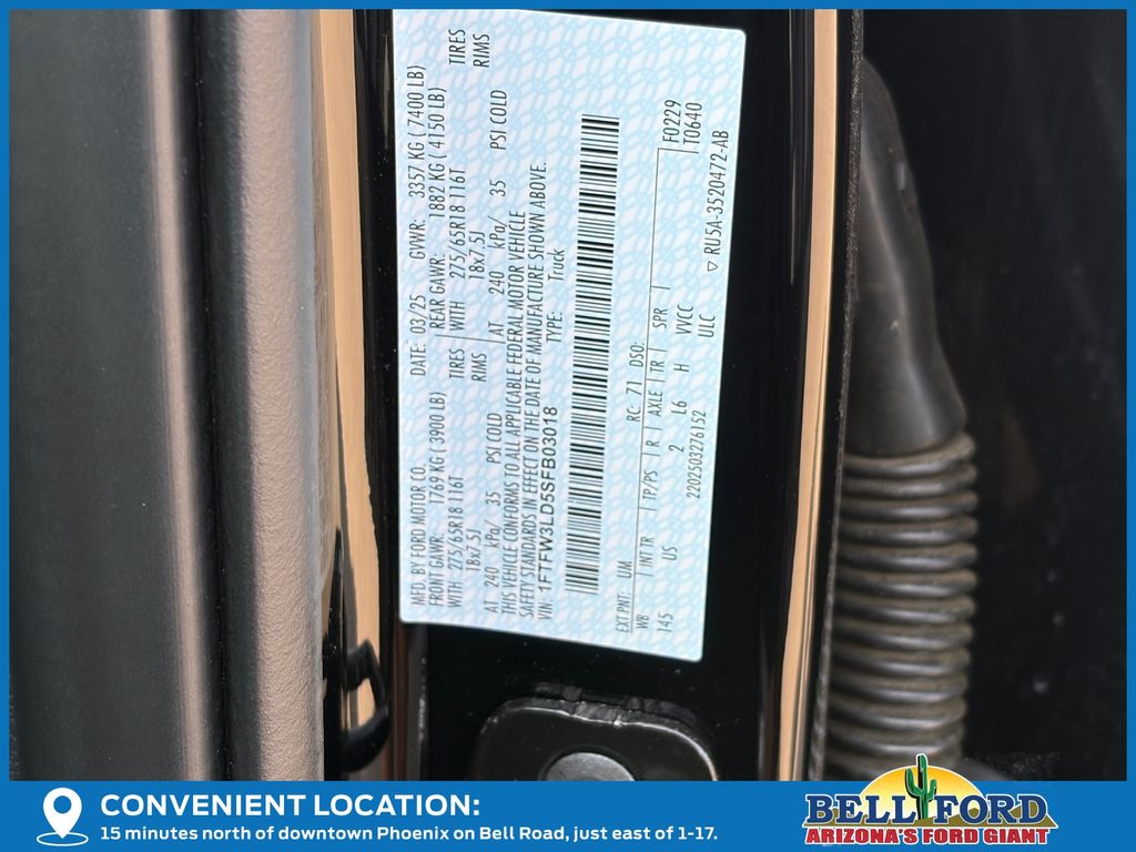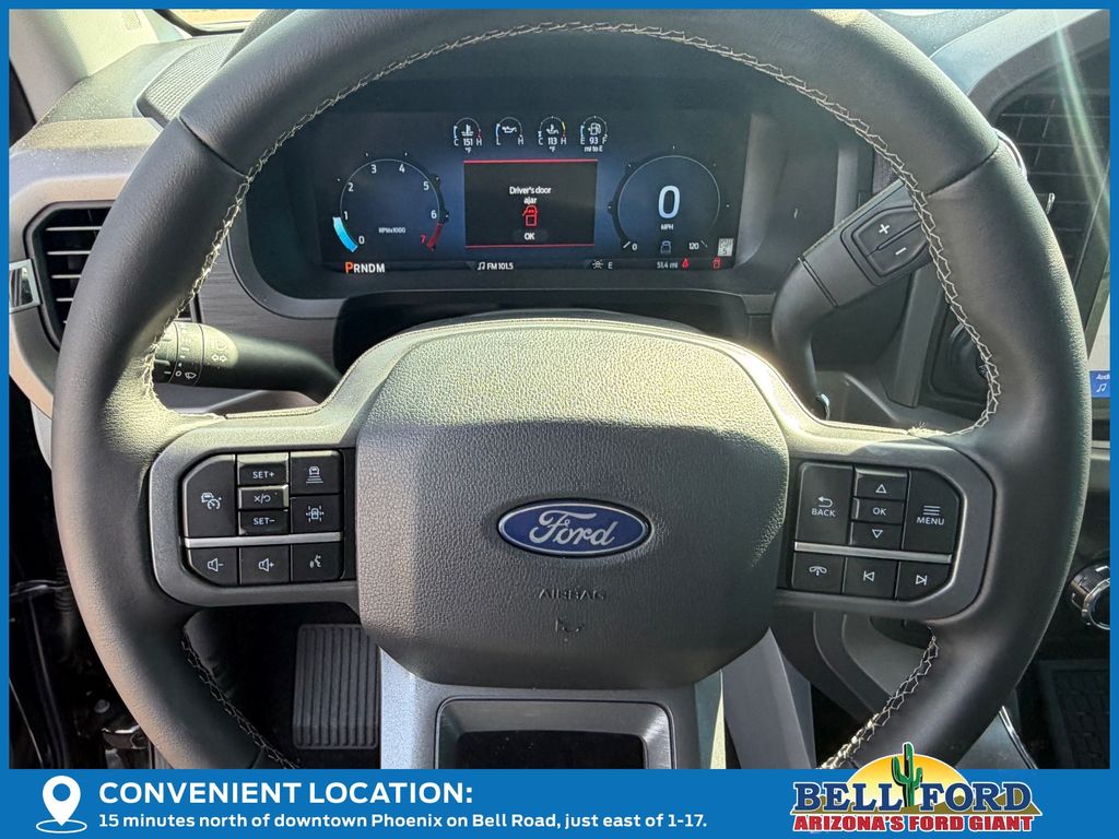 Equipment Group 302A Mid (360 Degree Camera, 400W Cab & Bed Outlets, 6" Angular Bright Anodized Step Bar, Adaptive Cruise Control w/Stop & Go, Auto-Dimming Rear-View Mirror, Black Painted Grille w/Chrome Center Bar, Chrome Door & Tailgate Handles, Chrome Single-Tip Exhaust, Cloth 40/Console/40 Front Seats, Connected Navigation, Driver State Detection, Dual-Zone Electronic Automatic Temperature Control, Evasive Steering Assist, Ford Co-Pilot360 Assist 2.0, Front Parking Sensors, Heated Front Seats, Intelligent Access w/Push Button Start, Power Glass Heated Sideview Mirrors, Power-Sliding Rear Window, Remote Start System w/Remote Tailgate Release, Towing Technology, and Wrapped Steering Wheel), FX4 Off-Road Package, Mobile Office Package (Console Worksurface and Partitioned Lockable Rear Storage), Tow/Haul Package, 3.5L PowerBoost Full-Hybrid V6, 4WD, 4-Wheel Disc Brakes, 6 Speakers, ABS brakes, Air Conditioning, Alloy wheels, AM/FM radio: SiriusXM with 360L, Auto High-beam Headlights, Brake assist, Bumpers: chrome, Chrome wheels, Cloth 40/20/40 Front Seat, Compass, Delay-off headlights, Driver door bin, Driver vanity mirror, Dual front impact airbags, Dual front side impact airbags, Electronic Stability Control, Emergency communication system: SYNC 4 911 Assist, Front anti-roll bar, Front Center Armrest, Front fog lights, Front reading lights, Front wheel independent suspension, Fully automatic headlights, Heated door mirrors, Illuminated entry, Low tire pressure warning, Occupant sensing airbag, Outside temperature display, Overhead airbag, Overhead console, Panic alarm, Passenger door bin, Passenger vanity mirror, Power door mirrors, Power steering, Power windows, Pro Power Onboard - 7.2KW, Radio data system, Radio: AM/FM Stereo w/SiriusXM 360L, Rear Parking Sensors, Rear reading lights, Rear step bumper, Rear window defroster, Remote keyless entry, Security system, Speed control, Split folding rear seat, Steering wheel mounted audio controls, SYNC 4 w/Enhanced Voice Recognition, Tachometer, Telescoping steering wheel, Tilt steering wheel, Traction control, Trip computer, Variably intermittent wipers, Voltmeter, and Wheels: 18" Chrome-Like PVD.