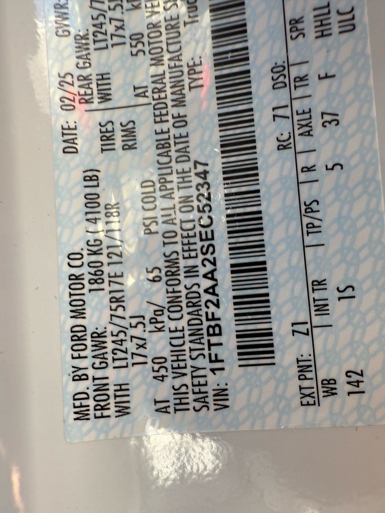 Camper Package (Rear Stabilizer Bar and Auxiliary Springs), GVWR: 10,000 Lb Payload Package, Order Code 600A (17" Argent Painted Steel Wheels, 3.73 Axle Ratio, HD Vinyl 40/20/40 Split Bench Seat, Radio: AM/FM Stereo with MP3 Player, and SYNC 4), XL Chrome Package (Bright Chrome Hub Covers and Center Ornaments, Chrome Front Bumper, Chrome Rear Step Bumper, and Halogen Fog Lamps), 120V/400W Outlet, 4 Speakers, 4-Wheel Disc Brakes, ABS brakes, Air Conditioning, AM/FM radio, Brake assist, Compass, Delay-off headlights, Dual front impact airbags, Dual front side impact airbags, Electronic Stability Control, Emergency communication system: SYNC 4 911 Assist, Exterior Parking Camera Rear, Front anti-roll bar, Front Center Armrest w/Storage, Front reading lights, Front wheel independent suspension, Fully automatic headlights, Heated door mirrors, Illuminated entry, Low tire pressure warning, Outside temperature display, Overhead airbag, Overhead console, Panic alarm, Passenger cancellable airbag, Passenger vanity mirror, Power door mirrors, Power steering, Power windows, Rear step bumper, Remote keyless entry, Security system, Speed control, Steering wheel mounted audio controls, Tachometer, Telescoping steering wheel, Tilt steering wheel, Tough Bed Spray-in Bedliner, Traction control, Trip computer, Turn signal indicator mirrors, Upfitter Switches (6), and Variably intermittent wipers. Price includes: $1500 - Retail Customer Cash. Exp. 01/05/2026 $2000 - Retail Customer Cash. Exp. 01/05/2026