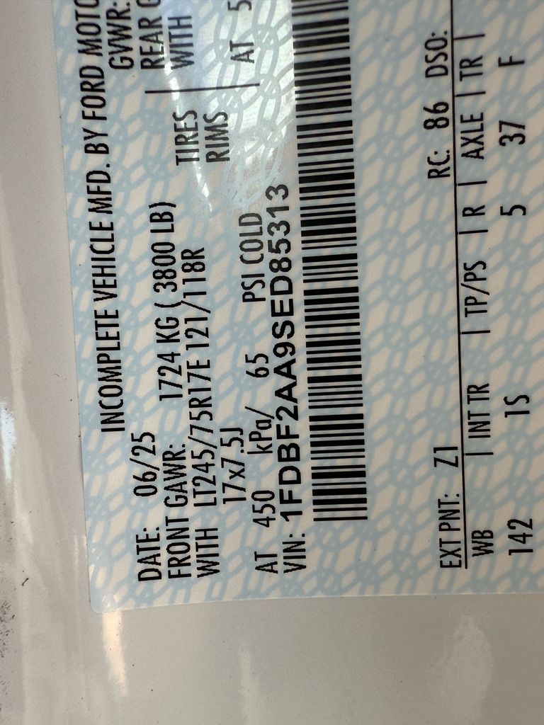 GVWR: 10,000 Lb Payload Package, Order Code 600A (17" Argent Painted Steel Wheels, 3.73 Axle Ratio, HD Vinyl 40/20/40 Split Bench Seat, Radio: AM/FM Stereo with MP3 Player, and SYNC 4), XL Chrome Package (Bright Chrome Hub Covers and Center Ornaments, Chrome Front Bumper, Chrome Rear Step Bumper, and Halogen Fog Lamps), 190 Amp Alternator, 4 Speakers, 4-Wheel Disc Brakes, ABS brakes, Air Conditioning, AM/FM radio, Brake assist, Compass, Delay-off headlights, Dual front impact airbags, Dual front side impact airbags, Electronic Stability Control, Emergency communication system: SYNC 4 911 Assist, Exterior Parking Camera Rear, Front anti-roll bar, Front Center Armrest w/Storage, Front License Plate Bracket, Front reading lights, Front wheel independent suspension, Fully automatic headlights, Heated door mirrors, Illuminated entry, Low tire pressure warning, Outside temperature display, Overhead airbag, Overhead console, Panic alarm, Passenger cancellable airbag, Passenger vanity mirror, Power door mirrors, Power steering, Power windows, Rear step bumper, Remote keyless entry, Security system, Speed control, Steering wheel mounted audio controls, Tachometer, Telescoping steering wheel, Tilt steering wheel, Traction control, Trailer Brake Controller, Trip computer, Turn signal indicator mirrors, Upfitter Switches (6), Variably intermittent wipers, and Vehicle Integration System 2.0. Price includes: $1500 - Retail Customer Cash. Exp. 01/05/2026 $2000 - Retail Customer Cash. Exp. 01/05/2026