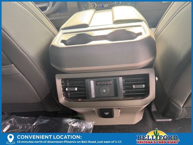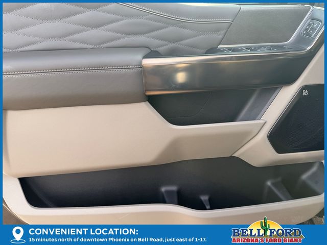 FX4 Off-Road Package (Hill Descent Control, Off-Road Specifically Tuned Shock Absorbers, and Unique FX4 Off-Road Box Decal), Order Code 713A, Platinum Plus Package (Illuminated Scuff Plates, Premium Leather IP Topper, Premium Luxury Leather-Wrapped Steering Wheel, Premium Venetian Leather Door Panel, Pro Power Onboard - 2kW, Satin Chrome Door Handles, Twin Panel Power Moonroof, Unique Platinum Plus Luxury Lthr 40/Console/40 Seats, Unique Satin Finish Grille, Unique Split Center Console Armrest, Upfitter Switches (6), and Wheels: 20" Bright w/Dark Carbonized Gray Aluminum), 4WD, 14 Speakers, 4-Wheel Disc Brakes, 410 Amp Dual Alternators, ABS brakes, Adjustable pedals, Air Conditioning, Alloy wheels, AM/FM radio: SiriusXM with 360L, Auto High-beam Headlights, Auto tilt-away steering wheel, Auto-dimming Rear-View mirror, Automatic temperature control, Brake assist, Bumpers: body-color, Compass, Delay-off headlights, Driver door bin, Driver vanity mirror, Dual front impact airbags, Dual front side impact airbags, Electronic Stability Control, Emergency communication system: SYNC 4 911 Assist, Flow-Through Console, Front anti-roll bar, Front Bucket Seats, Front Center Armrest, Front dual zone A/C, Front fog lights, Front reading lights, Fully automatic headlights, Garage door transmitter, Heads-Up Display, Heated door mirrors, Heated front seats, Heated rear seats, Heated steering wheel, Illuminated entry, Leather steering wheel, Low tire pressure warning, Memory seat, Navigation System, Outside temperature display, Overhead airbag, Overhead console, Panic alarm, Passenger door bin, Passenger vanity mirror, Pedal memory, Power door mirrors, Power driver seat, Power passenger seat, Power steering, Power windows, Radio: B&O Unleashed Sound System by Bang & Olufsen, Rain sensing wipers, Rapid-Heat Supplemental Cab Heater, Rear reading lights, Rear seat center armrest, Rear step bumper, Rear window defroster, Remote keyless entry, Retractable Bed Side-Step (Pre-Installed), Security system, SiriusXM Radio w/360L, Speed control, Split folding rear seat, Steering wheel memory, Steering wheel mounted A/C controls, Steering wheel mounted audio controls, SYNC 4 w/Enhanced Voice Recognition, Tachometer, Telescoping steering wheel, Tilt steering wheel, Tough Bed Spray-In Bedliner, Traction control, Trip computer, Turn signal indicator mirrors, Unique Platinum Leather 40/Console/40 Seats, Variably intermittent wipers, Vehicle Safe by Console Vault (Pre-Installed), Ventilated front seats, and Wheels: 20" Bright Machined & Painted Aluminum.