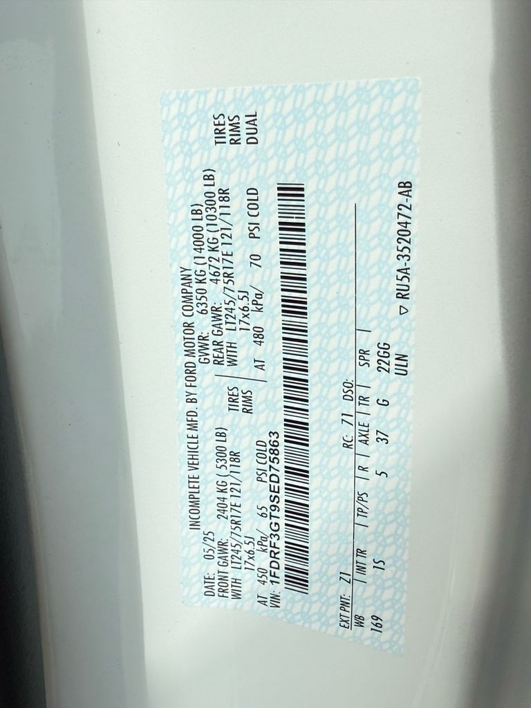 GVWR: 14,000 lb Payload Package, Order Code 640A, XL Chrome Package (Bright Grille, Chrome Front Bumper, Halogen Fog Lamps, and Remote Start), 120V/400W Outlet, 17" Argent Painted Steel Wheels, 190 Amp Alternator, 3.73 Axle Ratio, 4 Speakers, 4-Ton Hydraulic Jack, 4-Wheel Disc Brakes, 410 Amp Dual Alternators, ABS brakes, Air Conditioning, AM/FM radio, AM/FM Stereo w/MP3 Player, Brake assist, Compass, Delay-off headlights, Dual 68 AH/65 AGM Battery, Dual front impact airbags, Dual front side impact airbags, Dual rear wheels, Emergency communication system: SYNC 4 911 Assist, Front anti-roll bar, Front Center Armrest w/Storage, Front reading lights, Front wheel independent suspension, Fully automatic headlights, HD Vinyl 40/20/40 Split Bench Seat, Heated door mirrors, Illuminated entry, Low tire pressure warning, Outside temperature display, Overhead airbag, Overhead console, Panic alarm, Passenger cancellable airbag, Passenger vanity mirror, Platform Running Boards, Power door mirrors, Power steering, Power windows, Rear anti-roll bar, Rear View Camera & Prep Kit, Remote keyless entry, Security system, Speed control, Steering wheel mounted audio controls, SYNC 4 Communication & Entertainment System, Tachometer, Telescoping steering wheel, Tilt steering wheel, Traction control, Trip computer, Turn signal indicator mirrors, and Variably intermittent wipers.
