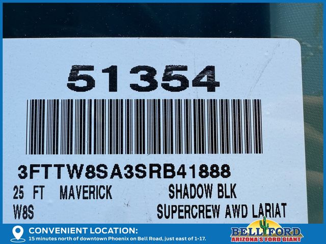 Shadow Blk 2025 Ford Maverick Lariat AWD EcoBoost 2.0L I4 GTDi DOHC Turbocharged VCT 8-Speed Automatic