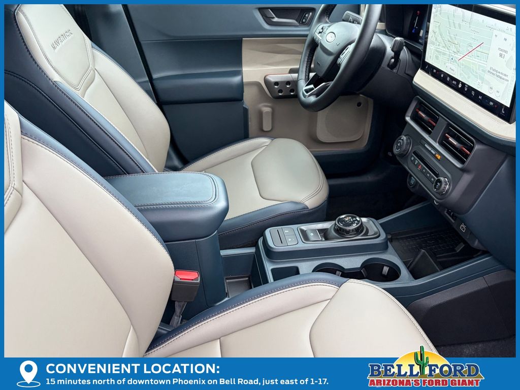 This Ford Maverick is equipped with the following options: 4K Tow Package (Trailer Brake Controller, Trailer Hitch (Class III) 2" Receiver, Transmission Oil Cooler, and Upgraded Cooling Fan), Equipment Group 502A, 2.91 Axle Ratio, 4-Wheel Disc Brakes, 8 Speakers, ABS brakes, ActiveX Trimmed Heated Front Bucket Seats, Air Conditioning, Alloy wheels, AM/FM radio: SiriusXM with 360L, Apple CarPlay/Android Auto, Auto High-beam Headlights, Automatic temperature control, Brake assist, Bumpers: body-color, Compass, Delay-off headlights, Driver door bin, Driver vanity mirror, Dual front impact airbags, Dual front side impact airbags, Electronic Stability Control, Emergency communication system: SYNC 4 911 Assist, Exterior Parking Camera Rear, Four wheel independent suspension, Front anti-roll bar, Front Bucket Seats, Front Center Armrest, Front dual zone A/C, Front reading lights, Fully automatic headlights, Heated door mirrors, Heated front seats, Heated steering wheel, Illuminated entry, Internet access capable: FordPass Connect 5G, Knee airbag, Low tire pressure warning, Navigation system: Connected Navigation, Occupant sensing airbag, Outside temperature display, Overhead airbag, Overhead console, Panic alarm, Passenger door bin, Passenger vanity mirror, Power door mirrors, Power driver seat, Power steering, Power windows, Radio data system, Radio: B&O Sound System by Bang & Olufsen, Rear anti-roll bar, Rear seat center armrest, Rear step bumper, Remote keyless entry, Security system, SiriusXM w/360L, Speed control, Speed-sensing steering, Steering wheel mounted audio controls, SYNC 4 w/Enhanced Voice Recognition, Telescoping steering wheel, Tilt steering wheel, Traction control, Trip computer, and Wheels: 19" Machined Painted Aluminum. Price includes: $2000 - Retail Customer Cash. Exp. 02/16/2026