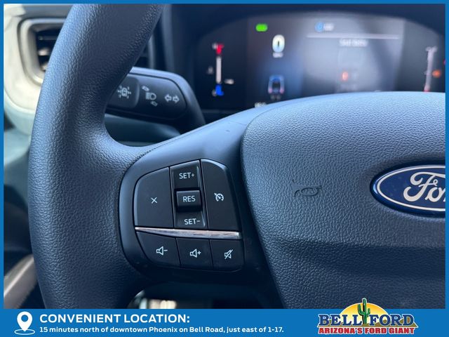 Equipment Group 100A, Ford Co-Pilot360 1.0 (Auto High Beams, BLIS w/Cross-Traffic Alert, Cross Traffic Brake Assist, Evasive Steering Assist, Intersection Assist, Lane-Keeping System, Power Glass Manual-Folding Mirrors, Pre-Collision Assist w/Automatic Emergency Braking, Rear Parking Sensors, and Rear-View Camera), 2.5L I-4 Hybrid, 2.91 Axle Ratio, 2K Trailer Hitch Receiver w/4-Pin Connector, 4-Wheel Disc Brakes, 6 Speakers, ABS brakes, Air Conditioning, AM/FM radio: SiriusXM with 360L, Apple CarPlay/Android Auto, Auto High-beam Headlights, Automatic temperature control, Brake assist, Bumpers: body-color, Compass, Delay-off headlights, Driver door bin, Driver vanity mirror, Dual front impact airbags, Dual front side impact airbags, Electronic Stability Control, Emergency communication system: SYNC 4 911 Assist, Exterior Parking Camera Rear, Front anti-roll bar, Front Bucket Seats, Front Center Armrest, Front Cloth Bucket Seats, Front reading lights, Front wheel independent suspension, Fully automatic headlights, Illuminated entry, Knee airbag, Low tire pressure warning, Occupant sensing airbag, Outside temperature display, Overhead airbag, Overhead console, Panic alarm, Passenger door bin, Passenger vanity mirror, Power steering, Power windows, Radio data system, Radio: AM/FM Stereo w/6 Speakers, Rear anti-roll bar, Rear step bumper, Remote keyless entry, SiriusXM w/360L, Speed control, Speed-sensing steering, Steering wheel mounted audio controls, SYNC 4 w/Enhanced Voice Recognition, Telescoping steering wheel, Tilt steering wheel, Traction control, Trip computer, and Wheels: 17" Steel w/Sparkle Silver Painted Cover.