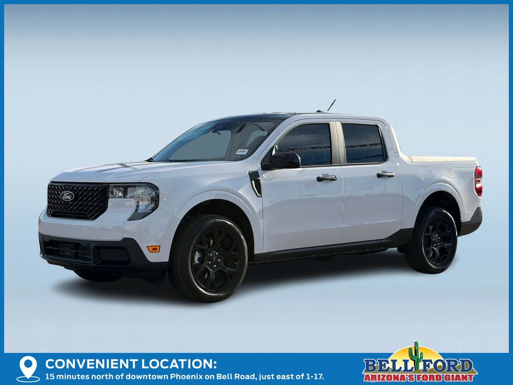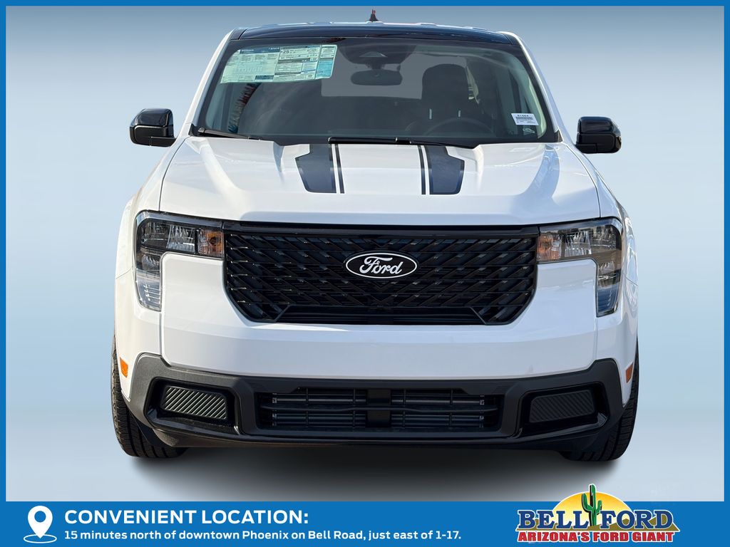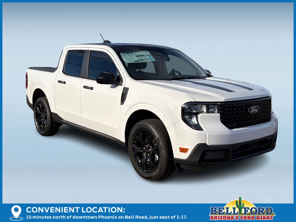 This Ford Maverick is equipped with the following options: Black Appearance Package (Black Grille, Black Interior Accents, Black Painted Mirrors, Front & Back Black Edition Ford Logo, Unique Cloth Front Bucket Seats w/Black Appearance, and Wheels: 19" Black Painted Aluminum), Equipment Group 302A, 2.91 Axle Ratio, 4-Wheel Disc Brakes, 6 Speakers, ABS brakes, Air Conditioning, Alloy wheels, AM/FM radio: SiriusXM with 360L, Apple CarPlay/Android Auto, Auto High Beams, Auto High-beam Headlights, Automatic temperature control, Brake assist, Bumpers: body-color, Compass, Delay-off headlights, Driver door bin, Driver vanity mirror, Dual front impact airbags, Dual front side impact airbags, Electronic Stability Control, Emergency communication system: SYNC 4 911 Assist, Exterior Parking Camera Rear, Four wheel independent suspension, Front anti-roll bar, Front Bucket Seats, Front Center Armrest, Front reading lights, Fully automatic headlights, Illuminated entry, Internet access capable: FordPass Connect 5G, Knee airbag, Low tire pressure warning, Occupant sensing airbag, Outside temperature display, Overhead airbag, Overhead console, Panic alarm, Passenger door bin, Passenger vanity mirror, Power door mirrors, Power steering, Power windows, Pre-Collision Assist w/Automatic Emergency Braking, Radio data system, Radio: AM/FM Stereo w/6 Speakers, Rear anti-roll bar, Rear seat center armrest, Rear step bumper, Rear-View Camera, Remote keyless entry, Security system, SiriusXM w/360L, Speed control, Speed-sensing steering, Steering wheel mounted audio controls, SYNC 4 w/Enhanced Voice Recognition, Telescoping steering wheel, Tilt steering wheel, Traction control, Trip computer, Unique Cloth Front Bucket Seats, and Wheels: 17" Carbonized Gray Painted Aluminum. Price includes: $1000 - Truck Month Bonus Customer Cash. Exp. 03/31/2026 $1500 - Retail Customer Cash. Exp. 03/31/2026