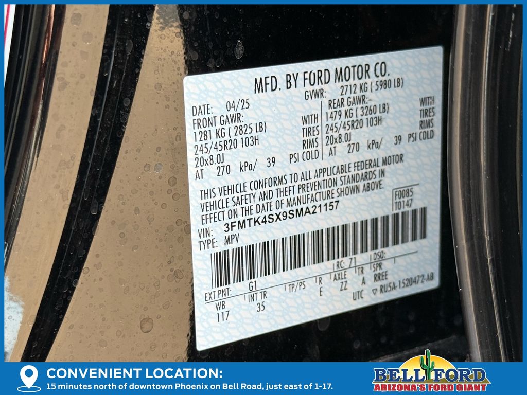 Equipment Group 400A Standard Package, 10 Speakers, 4-Wheel Disc Brakes, ABS brakes, Adaptive suspension, Air Conditioning, Alloy wheels, AM/FM radio: SiriusXM with 360L, Apple CarPlay/Android Auto, Auto High-beam Headlights, Auto-dimming Rear-View mirror, Automatic temperature control, Brake assist, Bumpers: body-color, Compass, Delay-off headlights, Driver door bin, Driver vanity mirror, Dual front impact airbags, Dual front side impact airbags, Electronic Stability Control, Emergency communication system: 911 Assist, Exterior Parking Camera Rear, Four wheel independent suspension, Front anti-roll bar, Front Bucket Seats, Front Center Armrest, Front dual zone A/C, Front reading lights, Fully automatic headlights, Garage door transmitter, Heated door mirrors, Heated front seats, Heated Perforated ActiveX Performance Seats, Heated steering wheel, Hood & Decklid Stripe/Door Graphics Delete, Illuminated entry, Knee airbag, Low tire pressure warning, Memory seat, Mobile Power Cord (120V/240V), Mustang Mach-E GT Performance Upgrade, Navigation system: Connected Navigation, Occupant sensing airbag, Outside temperature display, Overhead airbag, Overhead console, Panic alarm, Passenger door bin, Passenger vanity mirror, Power door mirrors, Power driver seat, Power Liftgate, Power passenger seat, Power steering, Power windows, Radio data system, Radio: B&O Sound System by Bang & Olufsen, Rain sensing wipers, Rear anti-roll bar, Rear seat center armrest, Rear side impact airbag, Rear window defroster, Rear window wiper, Remote keyless entry, Security system, SiriusXM w/360L, Speed control, Speed-sensing steering, Speed-Sensitive Wipers, Split folding rear seat, Spoiler, Steering wheel mounted audio controls, SYNC 4A w/Enhanced Voice Recognition, Telescoping steering wheel, Tilt steering wheel, Traction control, Trip computer, Turn signal indicator mirrors, Variably intermittent wipers, Wheels: 20" Machined Face Aluminum, and Wheels: 20" Monochromatic High Gloss Black-Painted. Price includes: $2000 - Retail Bonus Cash. Exp. 01/05/2026 $3000 - Retail Customer Cash. Exp. 01/05/2026