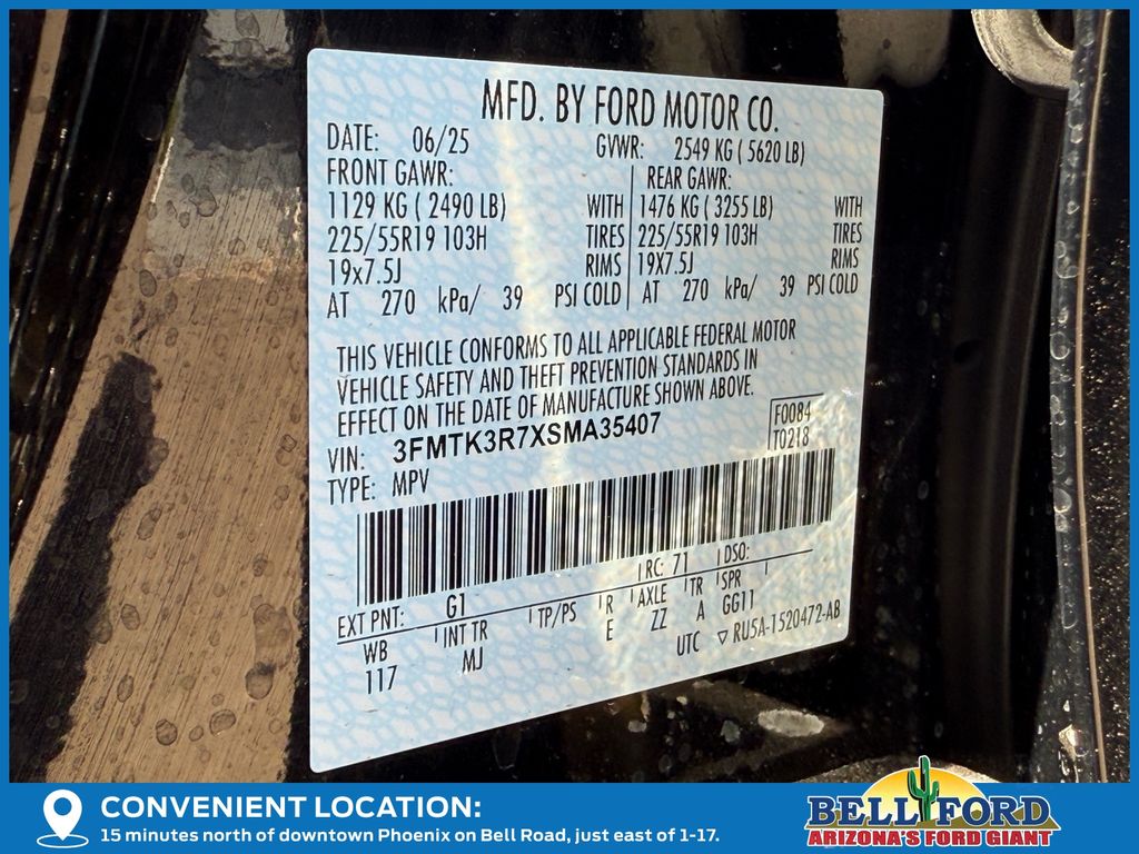 This Ford Mustang Mach-E is equipped with the following options: Equipment Group 300A Standard Package, 10 Speakers, 4-Wheel Disc Brakes, ABS brakes, Air Conditioning, Alloy wheels, AM/FM radio: SiriusXM with 360L, Apple CarPlay/Android Auto, Auto High-beam Headlights, Auto-dimming Rear-View mirror, Automatic temperature control, Brake assist, Bumpers: body-color, Compass, Delay-off headlights, Driver door bin, Driver vanity mirror, Dual front impact airbags, Dual front side impact airbags, Electronic Stability Control, Emergency communication system: 911 Assist, Exterior Parking Camera Rear, Four wheel independent suspension, Front anti-roll bar, Front Bucket Seats, Front Center Armrest, Front dual zone A/C, Front reading lights, Fully automatic headlights, Garage door transmitter, Heated door mirrors, Heated front seats, Heated steering wheel, Heated/Ventilated Perforated ActiveX Bucket Seats, Illuminated entry, Internet access capable: FordPass Connect, Knee airbag, Low tire pressure warning, Memory seat, Mobile Power Cord (120V/240V), Navigation system: Connected Navigation, Occupant sensing airbag, Outside temperature display, Overhead airbag, Overhead console, Panic alarm, Passenger door bin, Passenger vanity mirror, Power door mirrors, Power driver seat, Power Liftgate, Power passenger seat, Power steering, Power windows, Radio data system, Radio: B&O Sound System by Bang & Olufsen, Rain sensing wipers, Rear anti-roll bar, Rear seat center armrest, Rear side impact airbag, Rear window defroster, Rear window wiper, Remote keyless entry, Security system, SiriusXM w/360L, Speed control, Speed-sensing steering, Speed-Sensitive Wipers, Split folding rear seat, Spoiler, Steering wheel mounted audio controls, SYNC 4A w/Enhanced Voice Recognition, Telescoping steering wheel, Tilt steering wheel, Tire Inflator & Sealant Kit, Traction control, Trip computer, Turn signal indicator mirrors, Variably intermittent wipers, Ventilated front seats, Wheels: 19" Bright Machined Face Aluminum, and Wheels: 19" Bright Machined-Face Aluminum. Price includes: $1000 - Final Days Mega Bonus Cash. Exp. 01/02/2026 $3000 - Retail Customer Cash. Exp. 01/05/2026