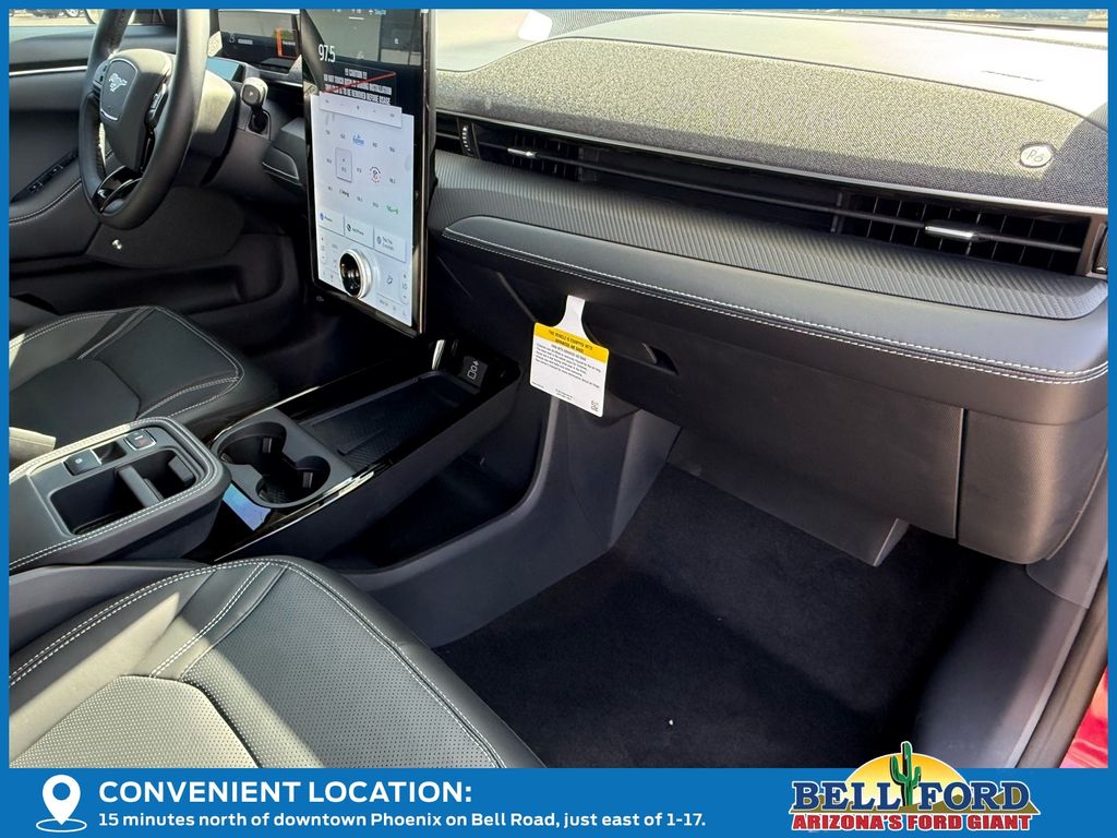This Ford Mustang Mach-E is equipped with the following options: Equipment Group 300A Standard Package, 10 Speakers, 4-Wheel Disc Brakes, ABS brakes, Air Conditioning, Alloy wheels, AM/FM radio: SiriusXM with 360L, Apple CarPlay/Android Auto, Auto High-beam Headlights, Auto-dimming Rear-View mirror, Automatic temperature control, Brake assist, Bumpers: body-color, Compass, Delay-off headlights, Driver door bin, Driver vanity mirror, Dual front impact airbags, Dual front side impact airbags, Electronic Stability Control, Emergency communication system: 911 Assist, Exterior Parking Camera Rear, Four wheel independent suspension, Front anti-roll bar, Front Bucket Seats, Front Center Armrest, Front dual zone A/C, Front reading lights, Fully automatic headlights, Garage door transmitter, Heated door mirrors, Heated front seats, Heated steering wheel, Heated/Ventilated Perforated ActiveX Bucket Seats, Illuminated entry, Internet access capable: FordPass Connect, Knee airbag, Low tire pressure warning, Memory seat, Mobile Power Cord (120V/240V), Navigation system: Connected Navigation, Occupant sensing airbag, Outside temperature display, Overhead airbag, Overhead console, Panic alarm, Passenger door bin, Passenger vanity mirror, Power door mirrors, Power driver seat, Power Liftgate, Power passenger seat, Power steering, Power windows, Radio data system, Radio: B&O Sound System by Bang & Olufsen, Rain sensing wipers, Rear anti-roll bar, Rear seat center armrest, Rear side impact airbag, Rear window defroster, Rear window wiper, Remote keyless entry, Security system, SiriusXM w/360L, Speed control, Speed-sensing steering, Speed-Sensitive Wipers, Split folding rear seat, Spoiler, Steering wheel mounted audio controls, SYNC 4A w/Enhanced Voice Recognition, Telescoping steering wheel, Tilt steering wheel, Traction control, Trip computer, Turn signal indicator mirrors, Variably intermittent wipers, Ventilated front seats, and Wheels: 19" Bright Machined-Face Aluminum. Price includes: $4000 - Retail Customer Cash. Exp. 03/31/2026