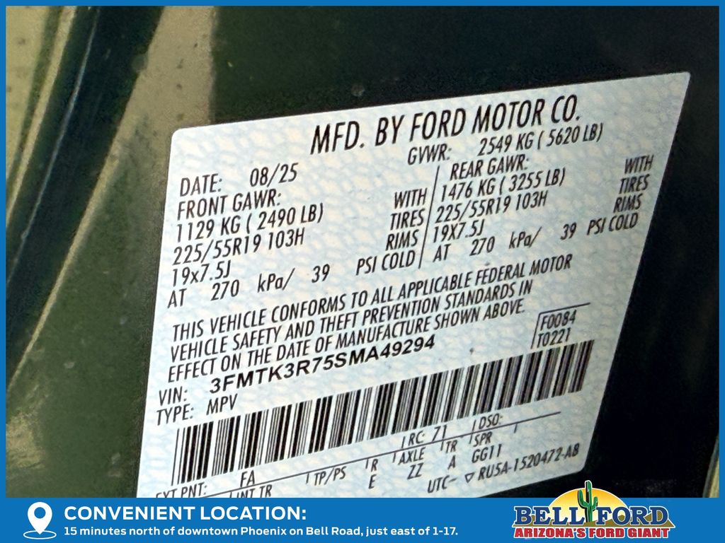 This Ford Mustang Mach-E is equipped with the following options: Equipment Group 300A Standard Package, 10 Speakers, 4-Wheel Disc Brakes, ABS brakes, Air Conditioning, Alloy wheels, AM/FM radio: SiriusXM with 360L, Apple CarPlay/Android Auto, Auto High-beam Headlights, Auto-dimming Rear-View mirror, Automatic temperature control, Brake assist, Bumpers: body-color, Compass, Delay-off headlights, Driver door bin, Driver vanity mirror, Dual front impact airbags, Dual front side impact airbags, Electronic Stability Control, Emergency communication system: 911 Assist, Exterior Parking Camera Rear, Four wheel independent suspension, Front anti-roll bar, Front Bucket Seats, Front Center Armrest, Front dual zone A/C, Front reading lights, Fully automatic headlights, Garage door transmitter, Heated door mirrors, Heated front seats, Heated steering wheel, Heated/Ventilated Perforated ActiveX Bucket Seats, Illuminated entry, Internet access capable: FordPass Connect, Knee airbag, Low tire pressure warning, Memory seat, Mobile Power Cord (120V/240V), Navigation system: Connected Navigation, Occupant sensing airbag, Outside temperature display, Overhead airbag, Overhead console, Panic alarm, Passenger door bin, Passenger vanity mirror, Power door mirrors, Power driver seat, Power Liftgate, Power passenger seat, Power steering, Power windows, Radio data system, Radio: B&O Sound System by Bang & Olufsen, Rain sensing wipers, Rear anti-roll bar, Rear seat center armrest, Rear side impact airbag, Rear window defroster, Rear window wiper, Remote keyless entry, Security system, SiriusXM w/360L, Speed control, Speed-sensing steering, Speed-Sensitive Wipers, Split folding rear seat, Spoiler, Steering wheel mounted audio controls, SYNC 4A w/Enhanced Voice Recognition, Telescoping steering wheel, Tilt steering wheel, Traction control, Trip computer, Turn signal indicator mirrors, Variably intermittent wipers, Ventilated front seats, and Wheels: 19" Bright Machined-Face Aluminum. Price includes: $4000 - Retail Customer Cash. Exp. 03/31/2026