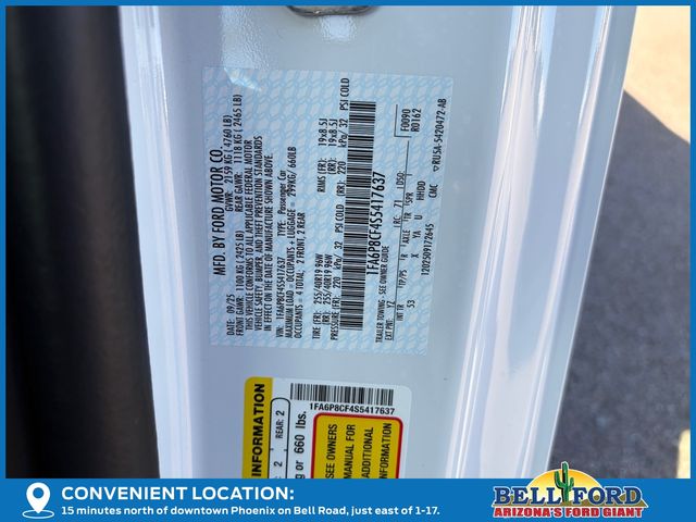 4-Wheel Disc Brakes, 6 Speakers, ABS brakes, Active Valve Performance Exhaust, Air Conditioning, Alloy wheels, AM/FM radio, AM/FM Stereo, Auto High-beam Headlights, Automatic temperature control, Brake assist, Bumpers: body-color, Cloth Bucket Seats, Compass, Delay-off headlights, Driver door bin, Driver vanity mirror, Dual front impact airbags, Dual front side impact airbags, Electronic Stability Control, Emergency communication system: 911 Assist, Exterior Parking Camera Rear, Four wheel independent suspension, Front anti-roll bar, Front Bucket Seats, Front Center Armrest, Front dual zone A/C, Front reading lights, Fully automatic headlights, Illuminated entry, Knee airbag, Leather Shift Knob, Leather steering wheel, Low tire pressure warning, Occupant sensing airbag, Outside temperature display, Overhead airbag, Overhead console, Panic alarm, Passenger door bin, Passenger vanity mirror, Power door mirrors, Power steering, Power windows, Radio data system, Rain sensing wipers, Rear anti-roll bar, Rear Parking Sensors, Rear window defroster, Remote keyless entry, Remote Start System, Speed control, Speed-sensing steering, Speed-Sensitive Wipers, Split folding rear seat, Spoiler, Sport steering wheel, Steering wheel mounted audio controls, SYNC 4, Tachometer, Telescoping steering wheel, Tilt steering wheel, Traction control, Trip computer, Variably intermittent wipers, Voltmeter, and Wheels: 18" x 8.5" Ebony Black Painted Aluminum. Price includes: $3500 - Retail Customer Cash. Exp. 01/05/2026
