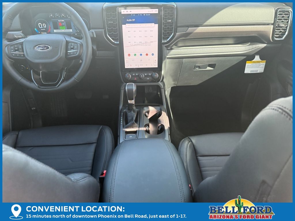 This Ford Ranger is equipped with the following options: Black Appearance Package (Black Center Bar & Surround Grille, Black Rear Bumper, Body-Color Painted Front Fascia, Front & Rear Black Ford Ovals, Painted Body-Color Wheel Lip Molding, Unique Carpet Mats, and Wheels: 18" Black Painted), Equipment Group 500A Standard, Sport Appearance Package (Gray Painted Center Bar & Grille Surround, Gray Painted Front Fascia & Rear Bumper, and Sport Box Decal), Trailer Tow Package (Class IV Trailer Hitch Receiver), 4WD, 10 Speakers, 4-Wheel Disc Brakes, ABS brakes, Air Conditioning, Alloy wheels, AM/FM radio: SiriusXM, Auto High-beam Headlights, Auto-dimming Rear-View mirror, Automatic temperature control, Black Running Boards, Brake assist, Compass, Delay-off headlights, Driver door bin, Driver vanity mirror, Dual front impact airbags, Dual front side impact airbags, Electronic Stability Control, Emergency communication system: SYNC 4 911 Assist, Front anti-roll bar, Front Bucket Seats, Front Center Armrest, Front dual zone A/C, Front fog lights, Front reading lights, Front wheel independent suspension, Fully automatic headlights, Garage door transmitter, Heated door mirrors, Heated front seats, Heated steering wheel, Illuminated entry, Internet access capable: FordPass Connect 4G, Leather Shift Knob, Leather steering wheel, Leather-Trimmed Front Heated Bucket Seats, Low tire pressure warning, Memory seat, Navigation system: Connected Navigation, Occupant sensing airbag, Outside temperature display, Overhead airbag, Overhead console, Panic alarm, Passenger door bin, Passenger vanity mirror, Power door mirrors, Power driver seat, Power passenger seat, Power steering, Power windows, Radio: B&O Sound System by Bang & Olufsen, Rain sensing wipers, Rear reading lights, Rear seat center armrest, Rear step bumper, Rear window defroster, Remote keyless entry, Security system, SiriusXM Satellite Radio, Speed control, Speed-sensing steering, Steering wheel mounted audio controls, SYNC 4A w/Connected Navigation, Telescoping steering wheel, Tilt steering wheel, Traction control, Trip computer, Turn signal indicator mirrors, Variably intermittent wipers, Voltmeter, and Wheels: 18" Machined Aluminum w/Dark Pockets. Price includes: $1000 - Truck Month Bonus Customer Cash. Exp. 03/31/2026 $2000 - Bonus Customer Cash. Exp. 03/31/2026