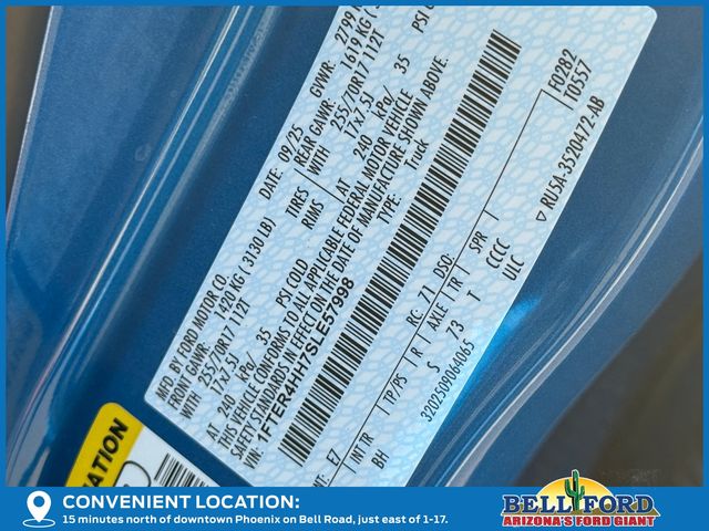 Equipment Group 300A Standard, FX4 Off-Road Package (FX4 Off-Road Box Decal, FX4 Selectable Drive Modes, Off-Road Screen in Center Stack, Off-Road Tuned Shocks, and Trail Control), Sport Appearance Package (Gray Painted Center Bar & Grille Surround, Gray Painted Front Fascia & Rear Bumper, and Sport Box Decal), Trailer Tow Package (Class IV Trailer Hitch Receiver), 4WD, 4-Wheel Disc Brakes, 6 Speakers, ABS brakes, Air Conditioning, Alloy wheels, AM/FM radio: SiriusXM, AM/FM Stereo, Auto High-beam Headlights, Auto-dimming Rear-View mirror, Brake assist, Cloth Front Bucket Seats, Compass, Delay-off headlights, Driver door bin, Driver vanity mirror, Dual front impact airbags, Dual front side impact airbags, Electronic Stability Control, Emergency communication system: SYNC 4 911 Assist, Front anti-roll bar, Front Bucket Seats, Front Center Armrest, Front fog lights, Front reading lights, Front wheel independent suspension, Fully automatic headlights, Illuminated entry, Leather Shift Knob, Low tire pressure warning, Navigation system: Connected Navigation, Occupant sensing airbag, Outside temperature display, Overhead airbag, Overhead console, Panic alarm, Passenger door bin, Passenger vanity mirror, Power door mirrors, Power steering, Power windows, Rear reading lights, Rear seat center armrest, Rear step bumper, Rear window defroster, Remote keyless entry, Security system, SiriusXM Satellite Radio, Speed control, Speed-sensing steering, Steering wheel mounted audio controls, SYNC 4A w/Connected Navigation, Telescoping steering wheel, Tilt steering wheel, Traction control, Trip computer, Variably intermittent wipers, Voltmeter, and Wheels: 17" Gray-Painted Aluminum. Price includes: $2000 - Bonus Customer Cash. Exp. 01/05/2026