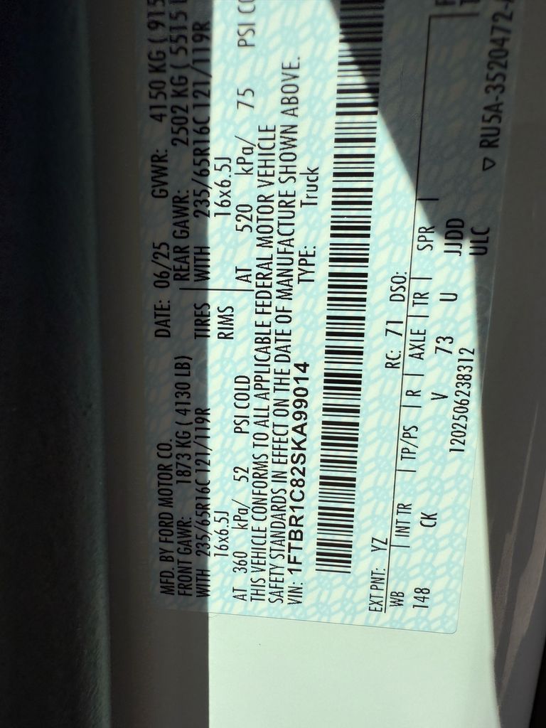 - VIN : 1FTBR1C82SKA99014